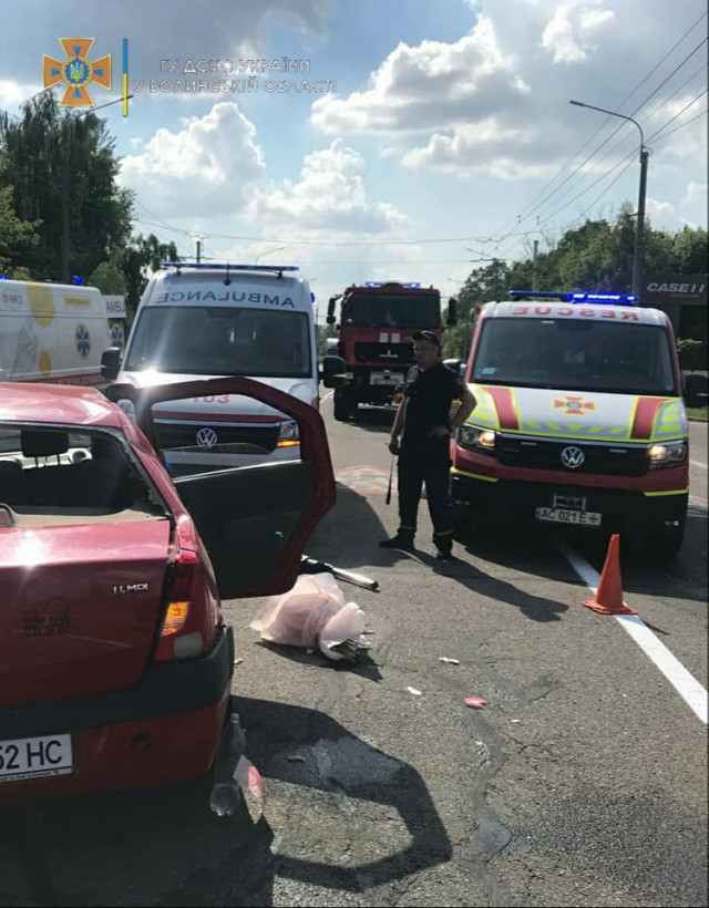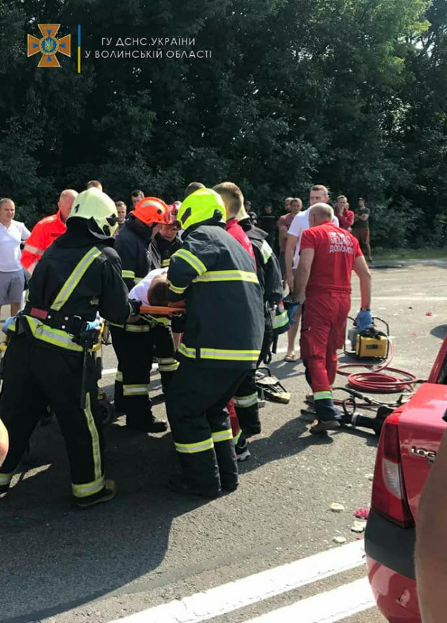 Бійці відділення аварійно-рятувальної частини АРЗ спецпризначення та першої державної пожежно-рятувальної частини деблокували двох людей віком 20-30 років, що опинилися затиснутими в двох автомобілях внаслідок ДТП. Про це повідомили в ГУ ДСНС Волині.