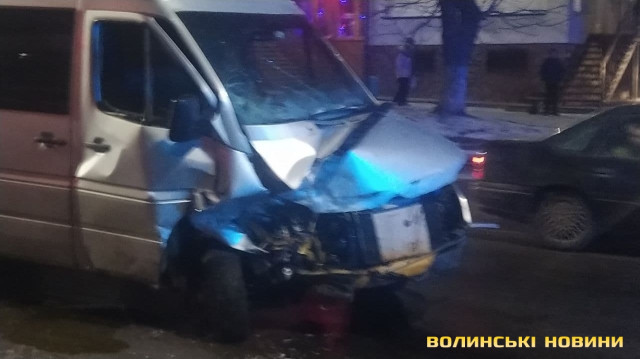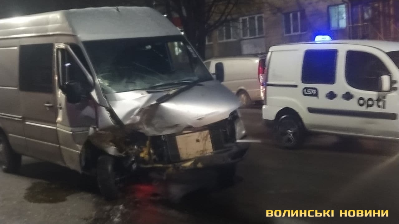 Як розповіли свідки аварії, водій сірого буса пропускав пішохода, який йшов по зебрі, а кермувальник легкової автівки невчасно зреагував і в’їхав у мікроавтобус.