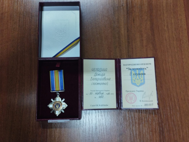 Нагадаємо, солдат Демид Челядин загинув 2 травня 2022 року в результаті ворожого обстрілу під час виконання бойового завдання на фронті поблизу населеного пункту Протопопівка Ізюмського району Харківської області.Указ про нагородження волинянина орденом «За мужність» ІІІ ступеня (посмертно) підписав Президент України Володимир Зеленський 30 червня 2022 року.«Цей орден не поверне до життя сина згорьованих батьків, та нехай він буде ще однією згадкою про велике серце Героя, про неймовірну відвагу, про велику любов до Батьківщини. Нехай світла пам’ять про Челядина Демида Валерійовича ніколи не згасне, а його ім’я назавжди залишиться жити в історії Шацької громади, в історії нашої держави», – ідеться в повідомленні.