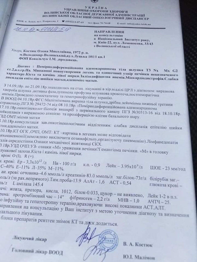 Нещодавно Олена дізналася про хворобу, яку без допомоги небайдужих людей їй не здолати. Важка недуга знову підкосила її здоров’я. Стан здоров’я зараз значно погіршився. Коштів для боротьби з хворобою немає.