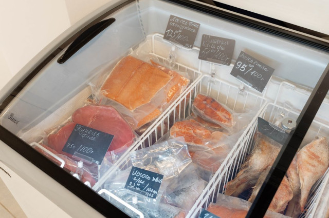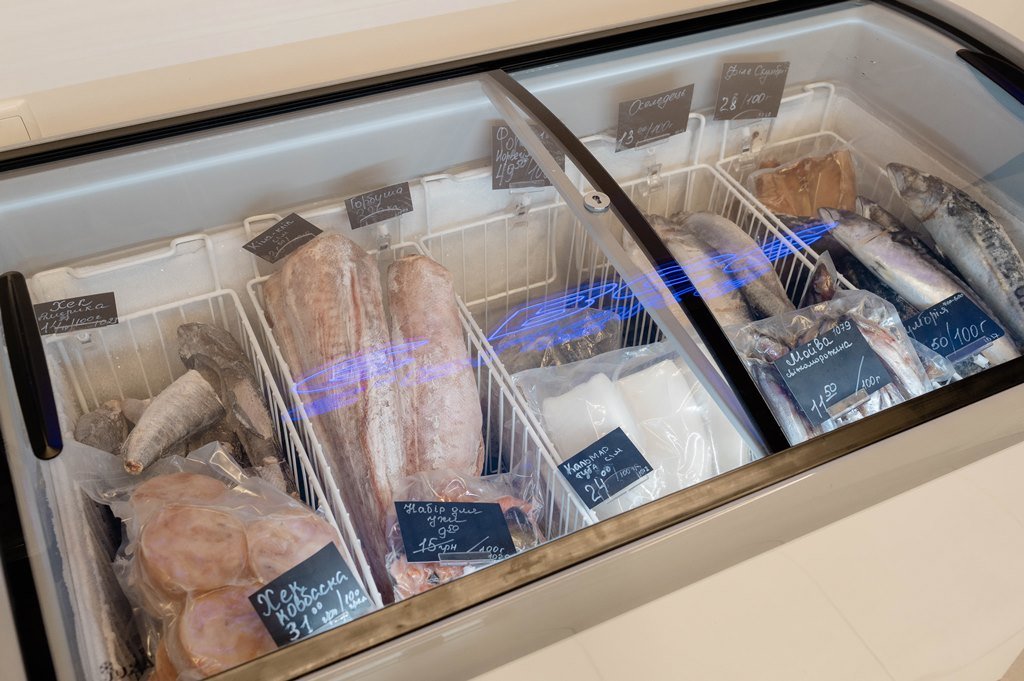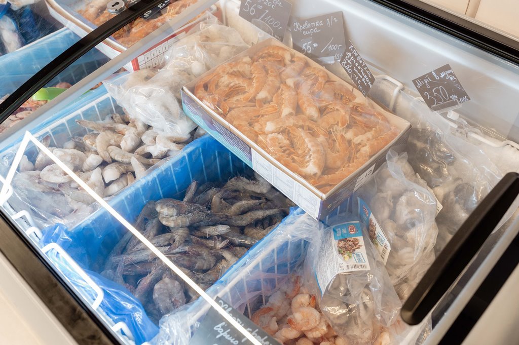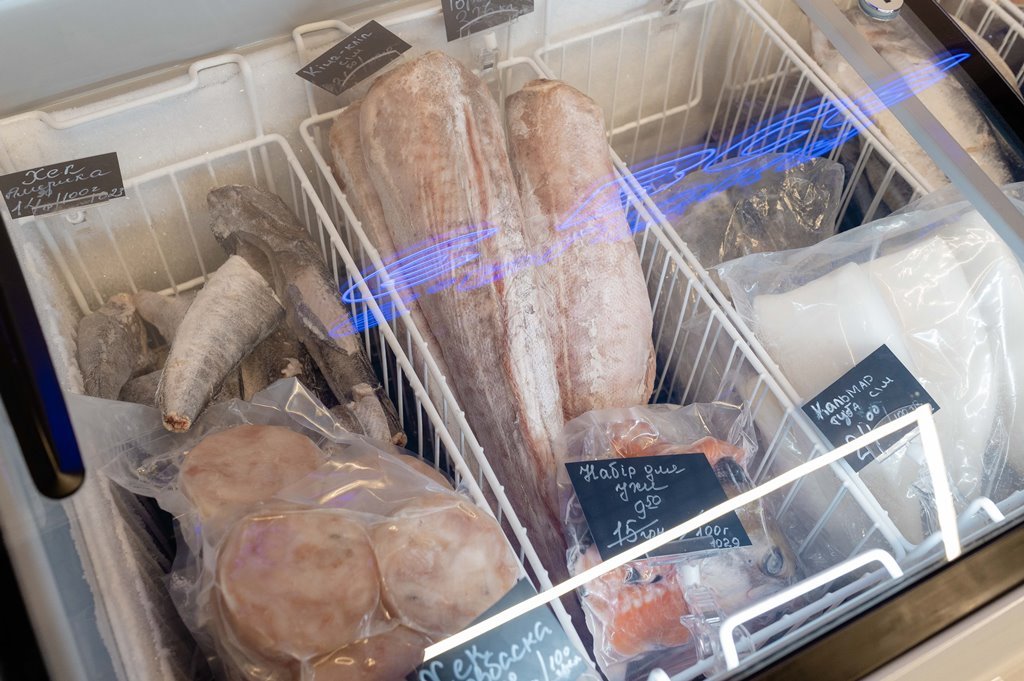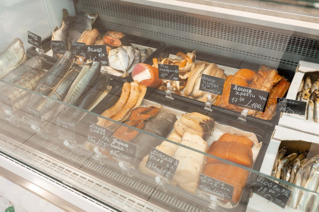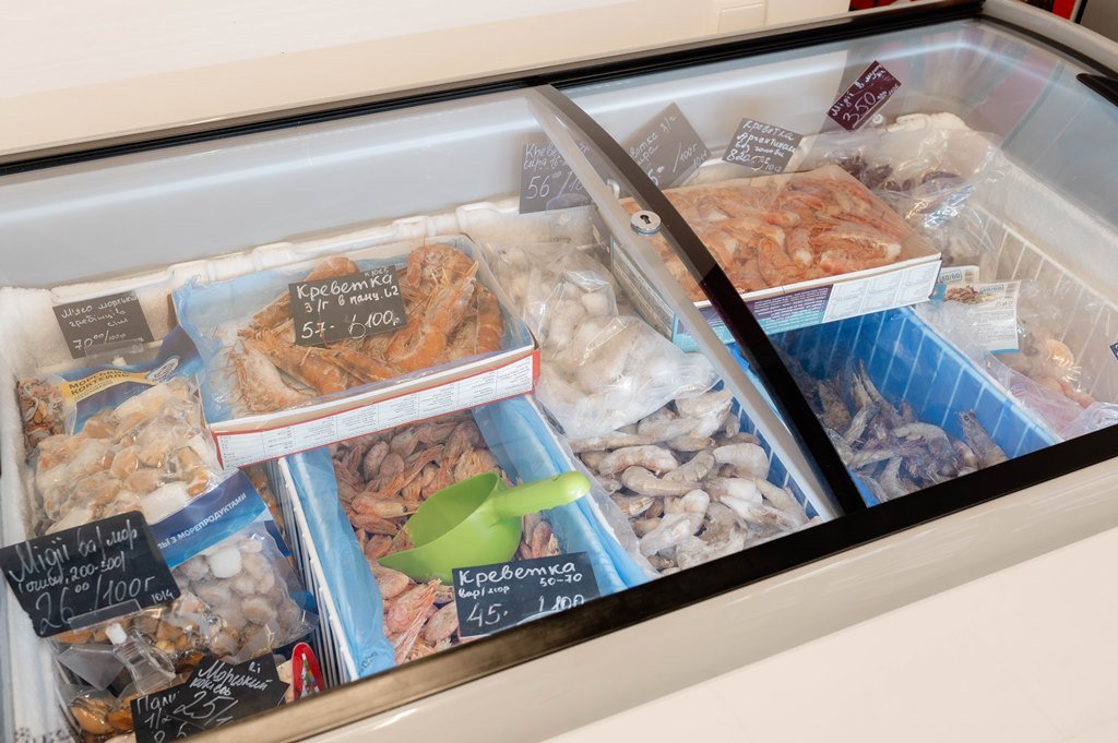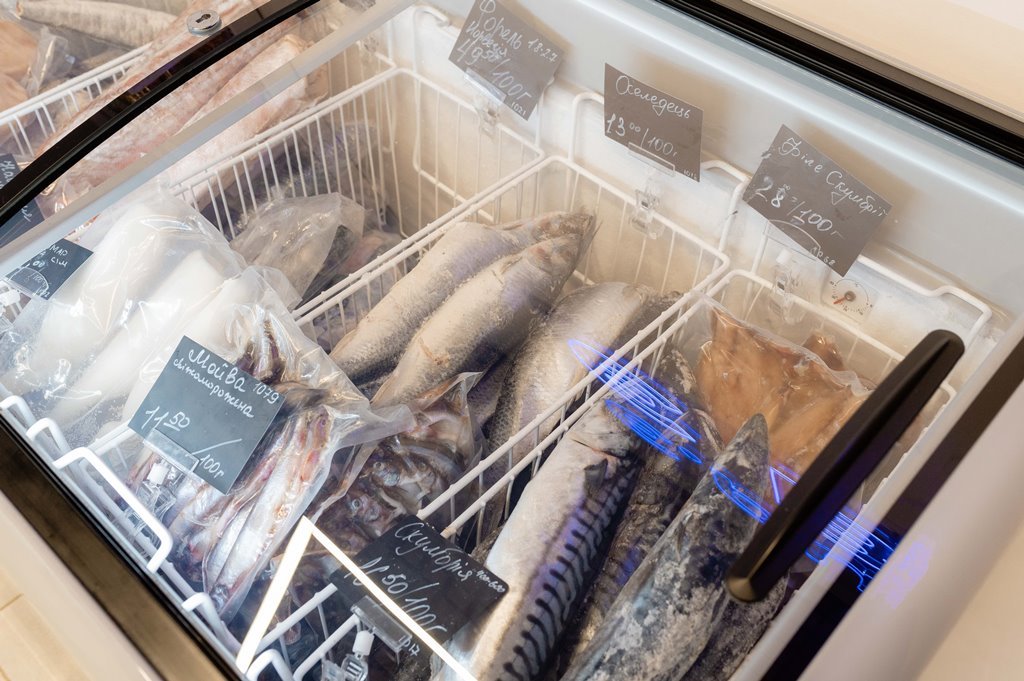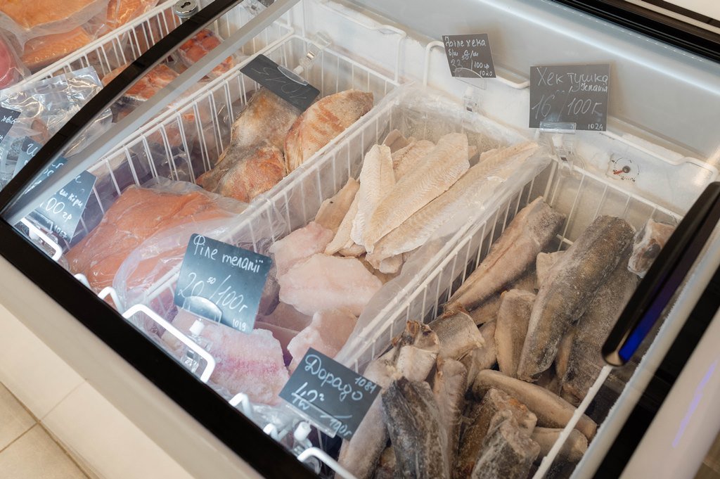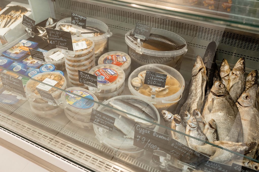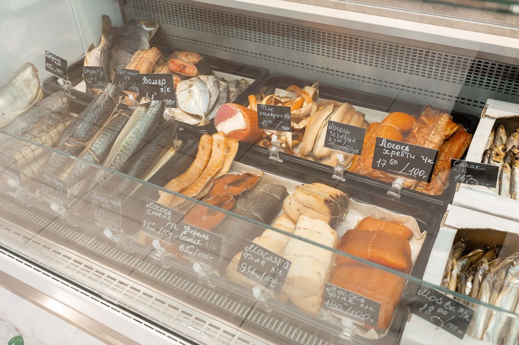 Основна спеціалізація магазину – морепродукти і риба. В асортименті є багато видів мороженої продукції: від столової риби більш бюджетних варіантів – оселедець, скумбрія, хек – до більш дорогих видів – тунець, кінг кліп, лангустини, креветки, ікра.• Холодне копчення: ставрида, форель балик, філе масляної, горбуша, філе лосося, черевця лосося, хвіст масляної, черевця масляної, скумбрія.• Солена рибка: креветка в маринаді, кілька, філе лосося, оселедець, скумбрія, філе оселедця святкове.