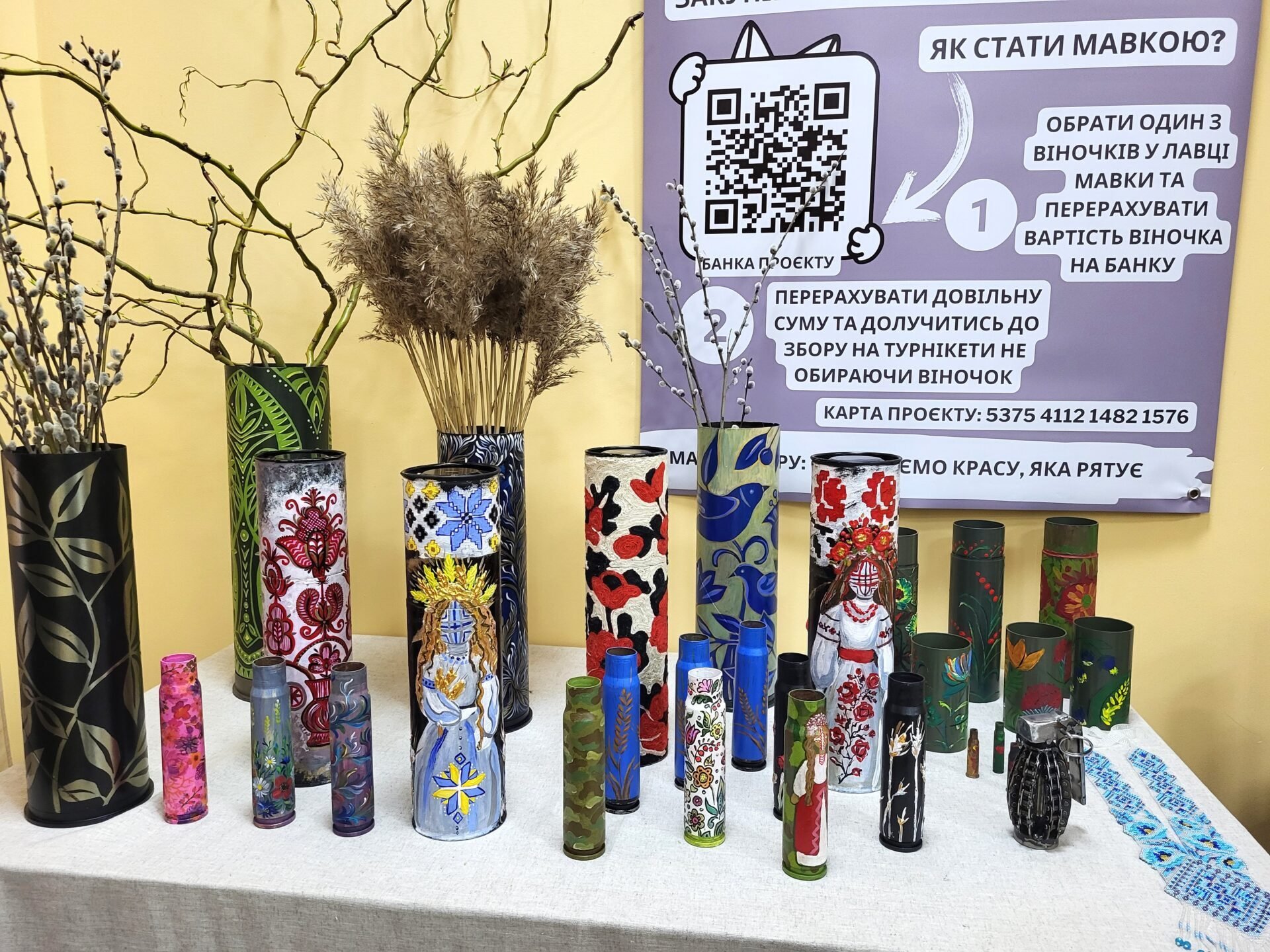 Кожен виріб має назву, QR-код, за яким можна дізнатися про його автора, історію створення, вартість. Ще організатори пропонують брошки Мавок, розфарбовані артоб’єкти – гільзи, тубуси, що їх подарували колектив дитячої художньої школи та учасники одного з майстеркласів.Міський голова Ігор Чайка, який побував на виставці, каже, що ковельчани не перестають захоплювати патріотизмом, реальними справами задля підтримки наших захисників, дивувати творчістю та креативом.«Велике спасибі усім, хто взяв участь у проєкті, хто його придумав, створив ці прикраси. Переконаний, ці роботи знайдуть власників, поставленої мети щодо збору необхідної суми буде досягнуто», – впевнений мер Ковеля.