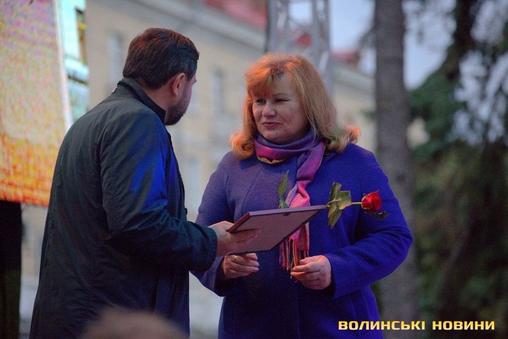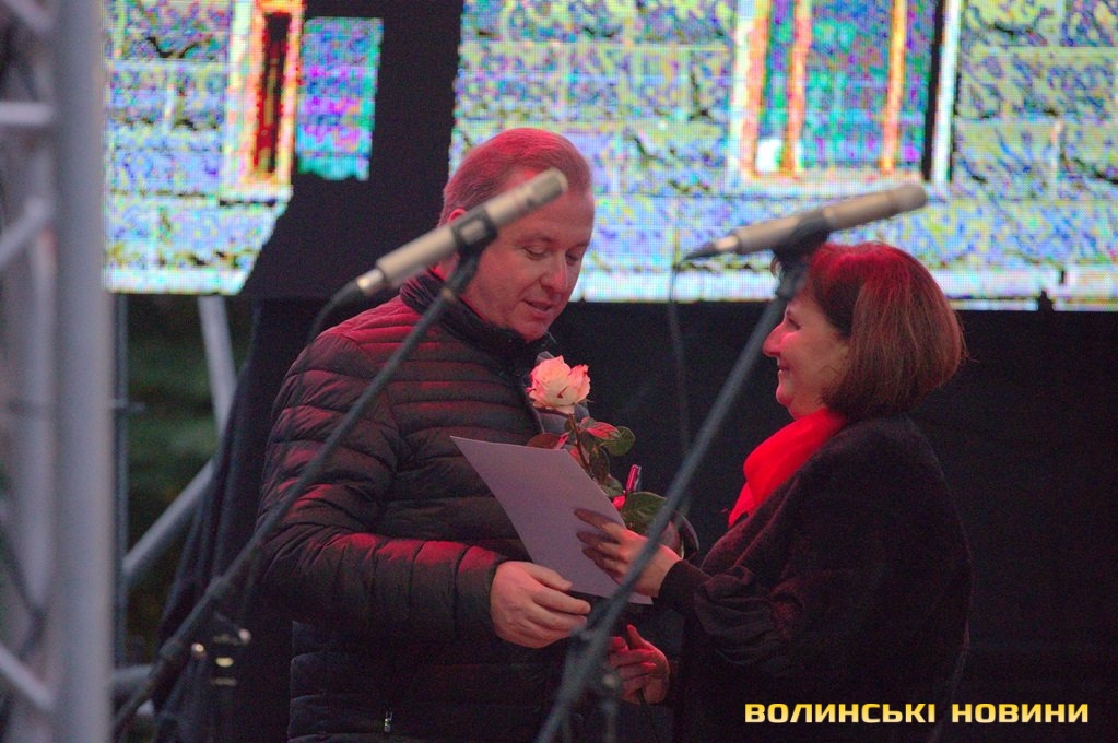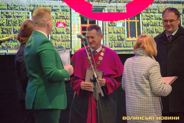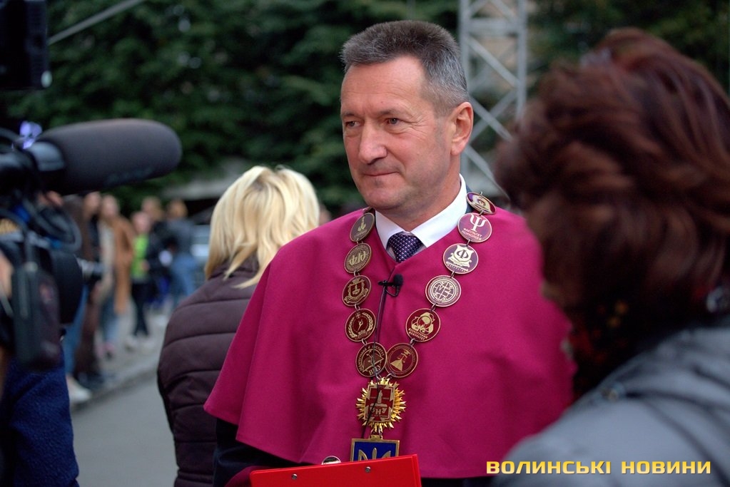 Щиро вітаю ректорат, професорсько-викладацький склад, працівників, докторантів, аспірантів і студентів університету імені Лесі Українки з ювілеєм. Зичу всім міцного здоров’я, щастя, успіхів у праці та навчанні, нових наукових відкриттів, високого та стабільного добробуту, довгих, мирних і плідних літ життя», – прозвучало зі сцени.