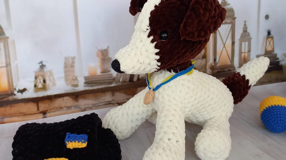 Лучанка Олена Чайка в’яже патріотичні іграшки та обереги для військових. Її іграшки замовляють для благодійних аукціонів українці, які живуть за кордоном.
