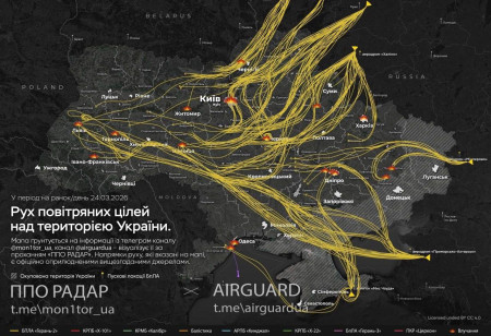 «У вівторок 24 березня Росія здійснює одну з наймасованіших атак на Україну ударними безпілотниками. Адже удень залетіло ще понад 550 ударних БПЛА противника. Тож, враховуючи нічну атаку з 18.00 23 березня по 18.00 24 березня 2026 року (за умовну добу), ворог застосував майже тисячу ударних безпілотників типу Shahed, Гербера та безпілотників інших типів», – йдеться в повідомленні.