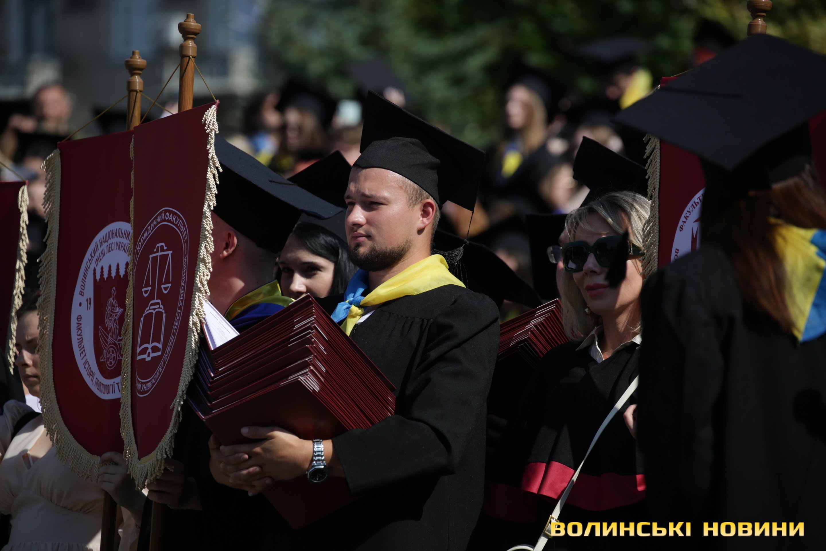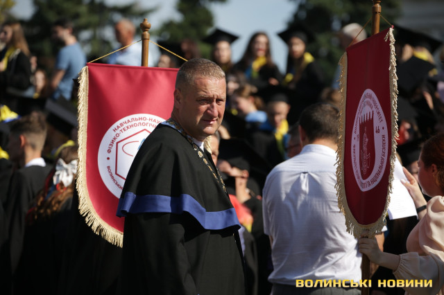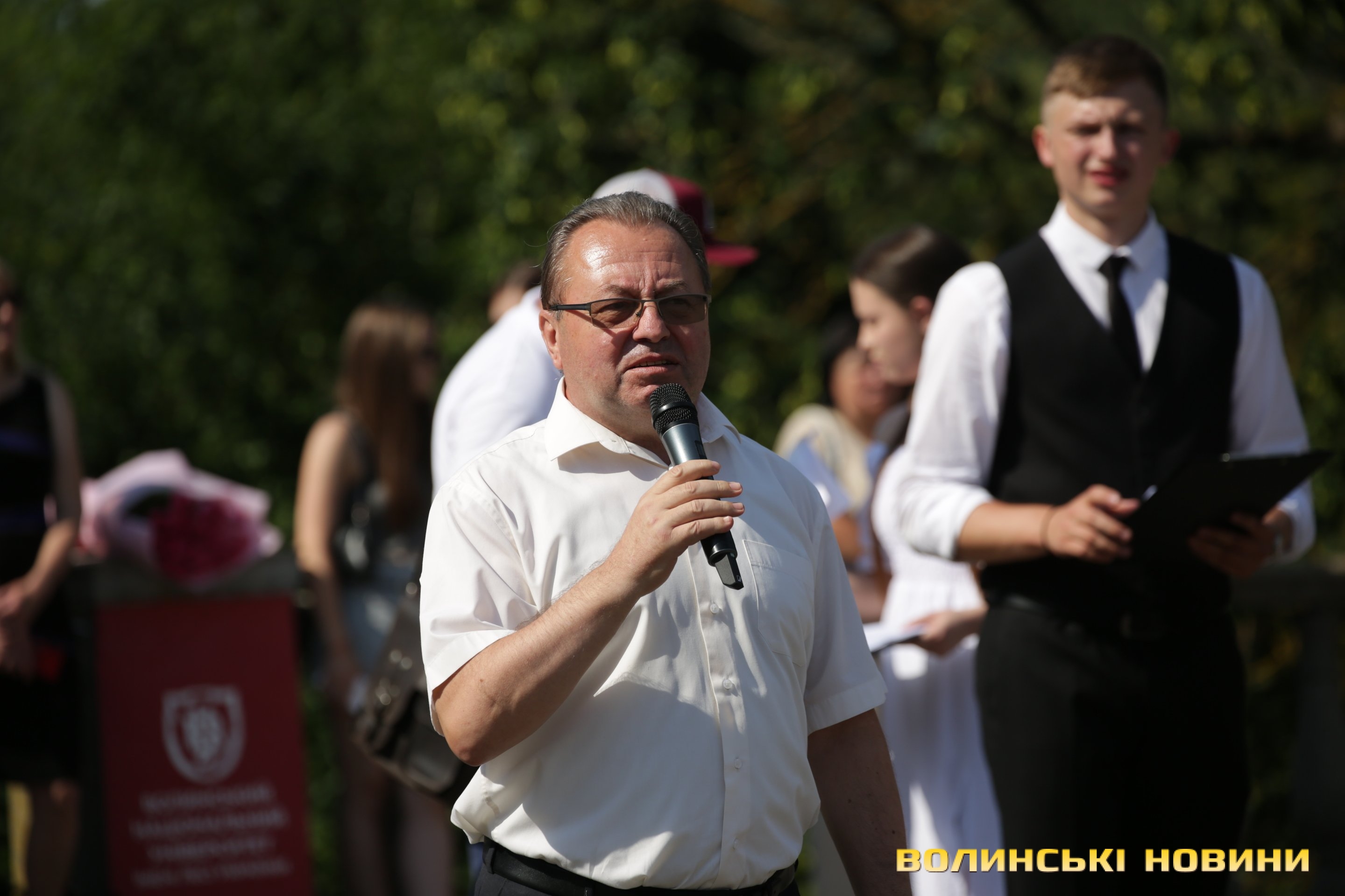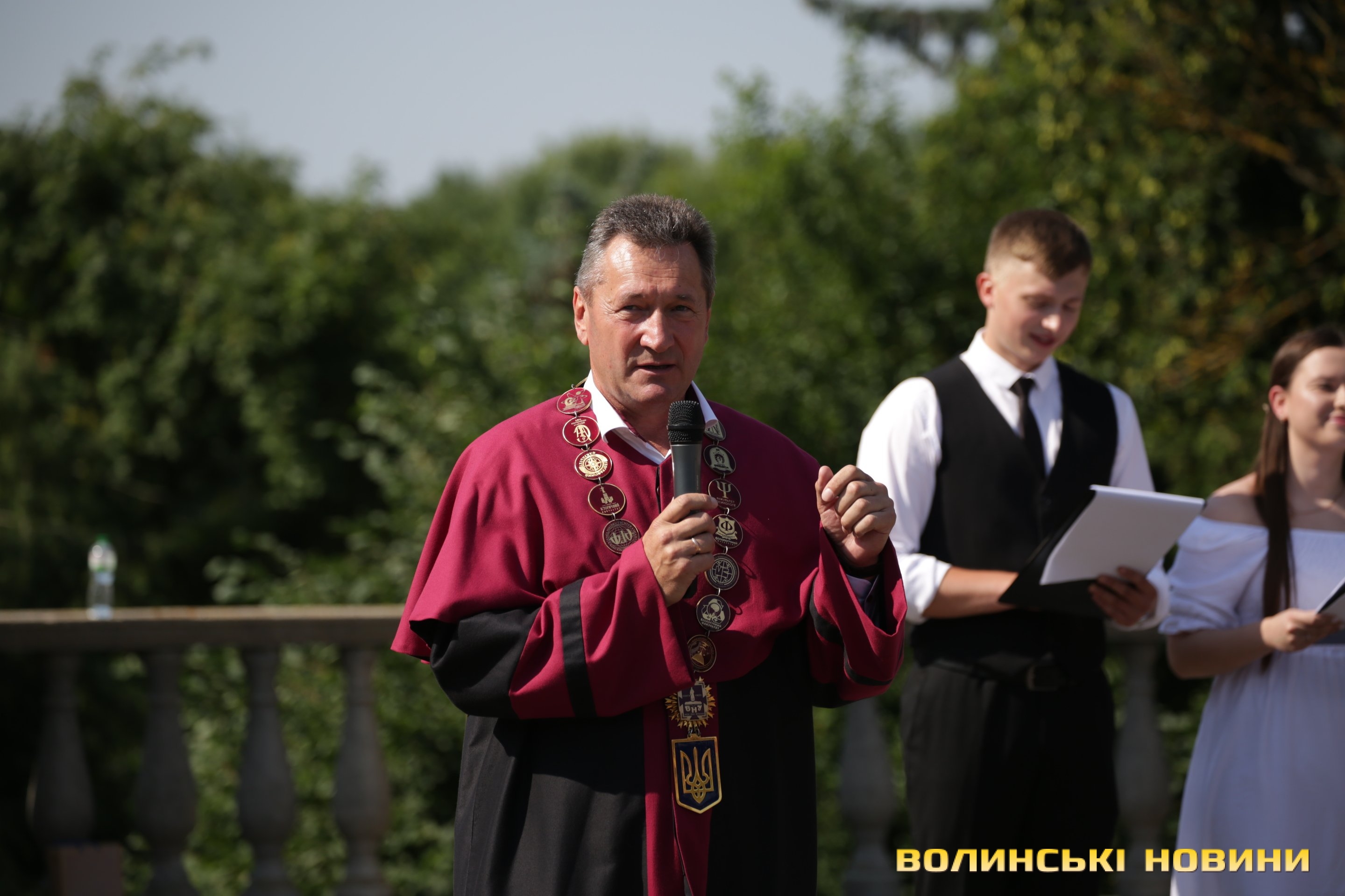 На початку заходу прозвучав Гімн України. Згодом присутні вшанували всіх жертв російсько-української війни хвилиною мовчання.«В університеті створені хороші умови для того, щоб кожен міг реалізувати свій потенціал. Багато з вас працювали і навчалися за програмою дуальної освіти. Багато з вас здобували освіту за програмами Erasmus+, подвійного диплома, академічних обмінів. Багато з вас займалися спортом, художньою самодіяльністю, громадською діяльністю, волонтерством. Ви отримали якісну освіту, яка дозволяє вам працювати в будь-яких сферах», – звернувся з вітальним словом до присутніх випускників ректор Волинського національного університету імені Лесі Українки Анатолій Цьось.