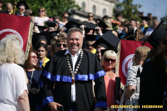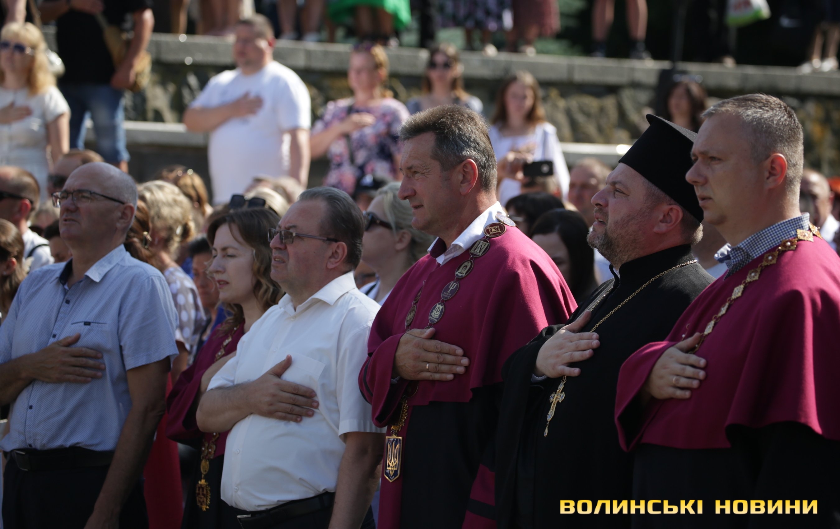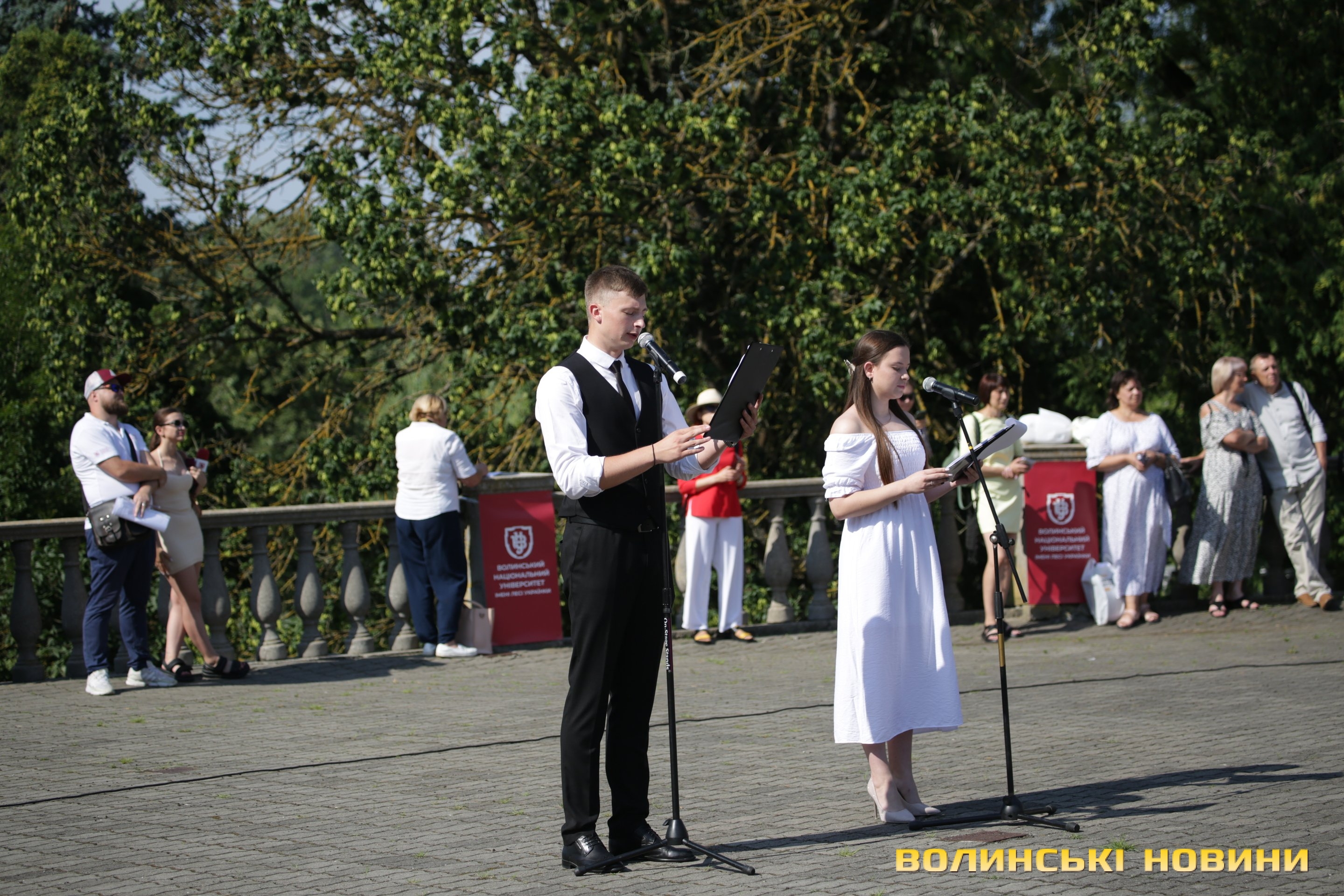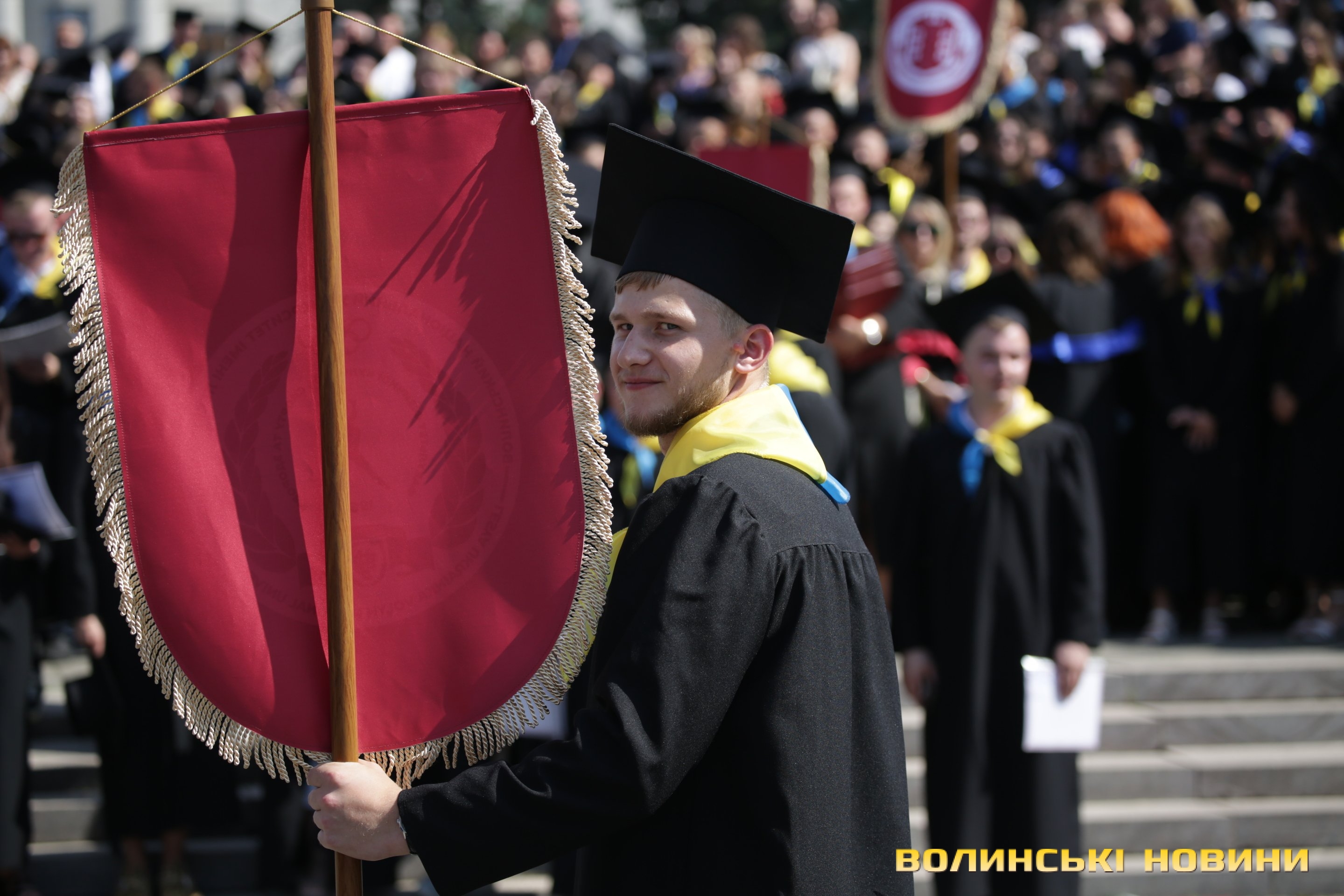 На початку заходу прозвучав Гімн України. Згодом присутні вшанували всіх жертв російсько-української війни хвилиною мовчання.«В університеті створені хороші умови для того, щоб кожен міг реалізувати свій потенціал. Багато з вас працювали і навчалися за програмою дуальної освіти. Багато з вас здобували освіту за програмами Erasmus+, подвійного диплома, академічних обмінів. Багато з вас займалися спортом, художньою самодіяльністю, громадською діяльністю, волонтерством. Ви отримали якісну освіту, яка дозволяє вам працювати в будь-яких сферах», – звернувся з вітальним словом до присутніх випускників ректор Волинського національного університету імені Лесі Українки Анатолій Цьось.