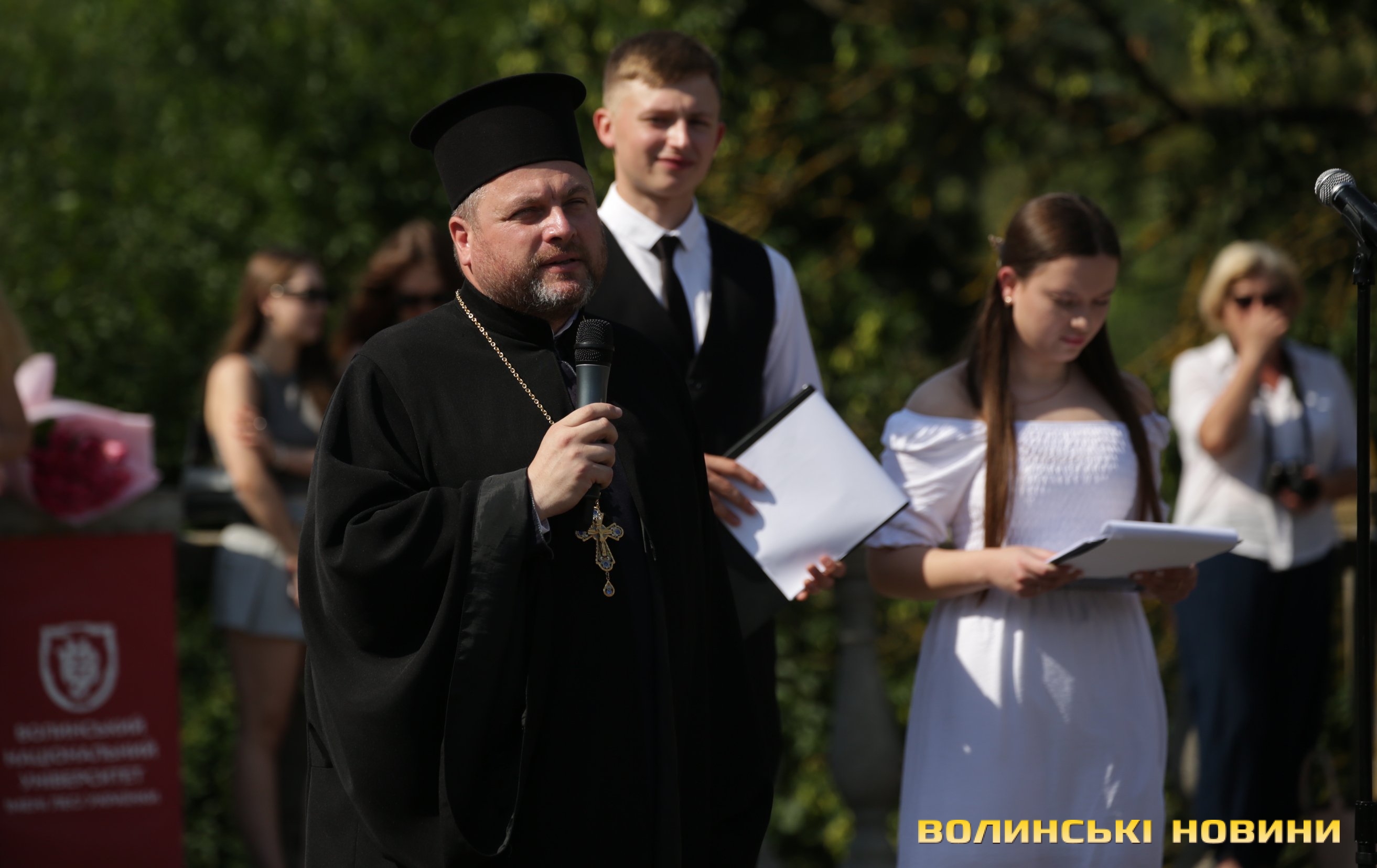 Наостанок ректор привітав випускників із закінченням навчання та побажав їм реалізувати свій потенціал на максимум.До привітань долучилися керівник капеланської служби Волинської єпархії ПЦУ, отець Олександр Безкоровайний і заступник голови Волинської обласної ради Григорій Пустовіт.