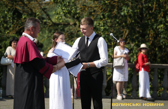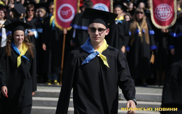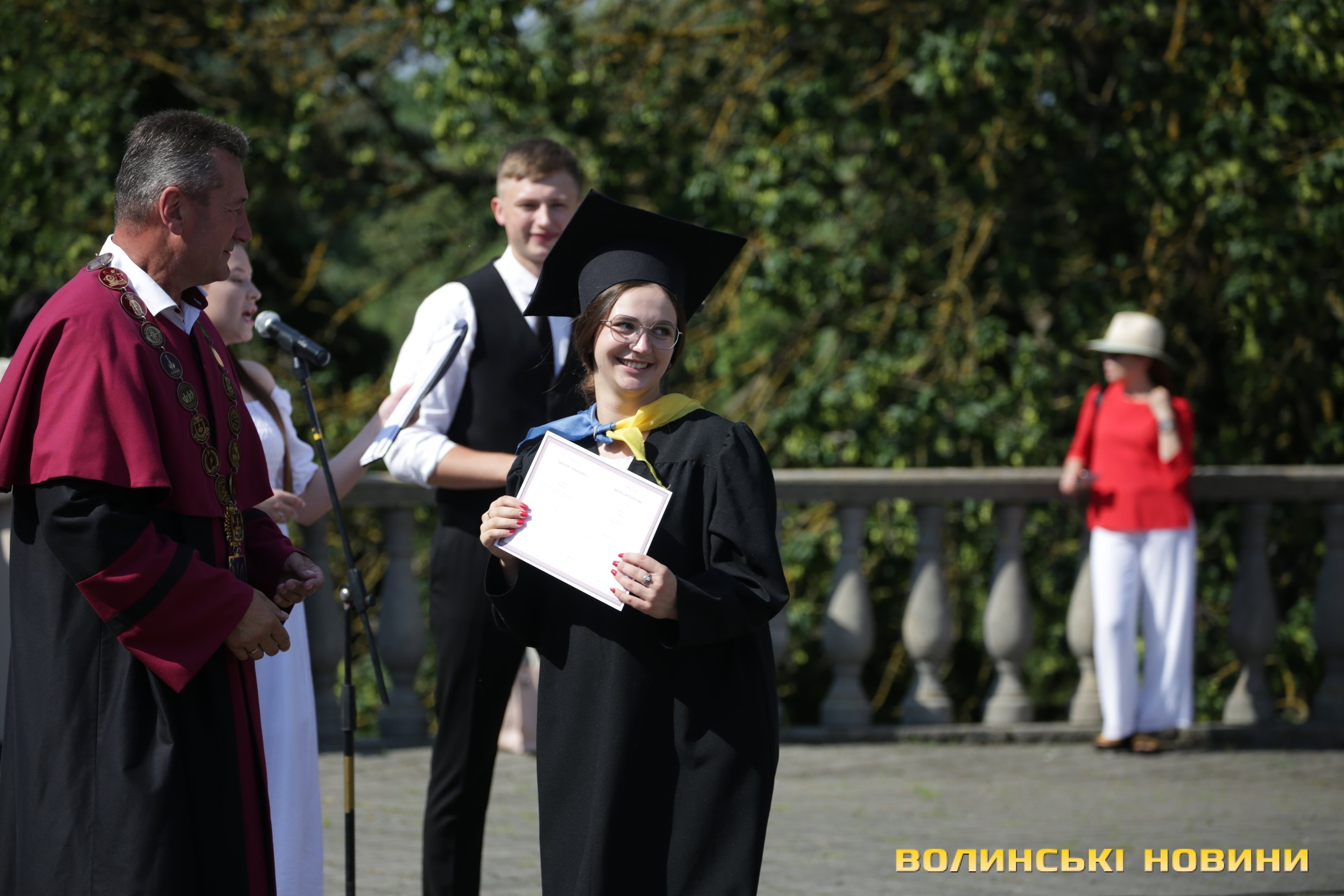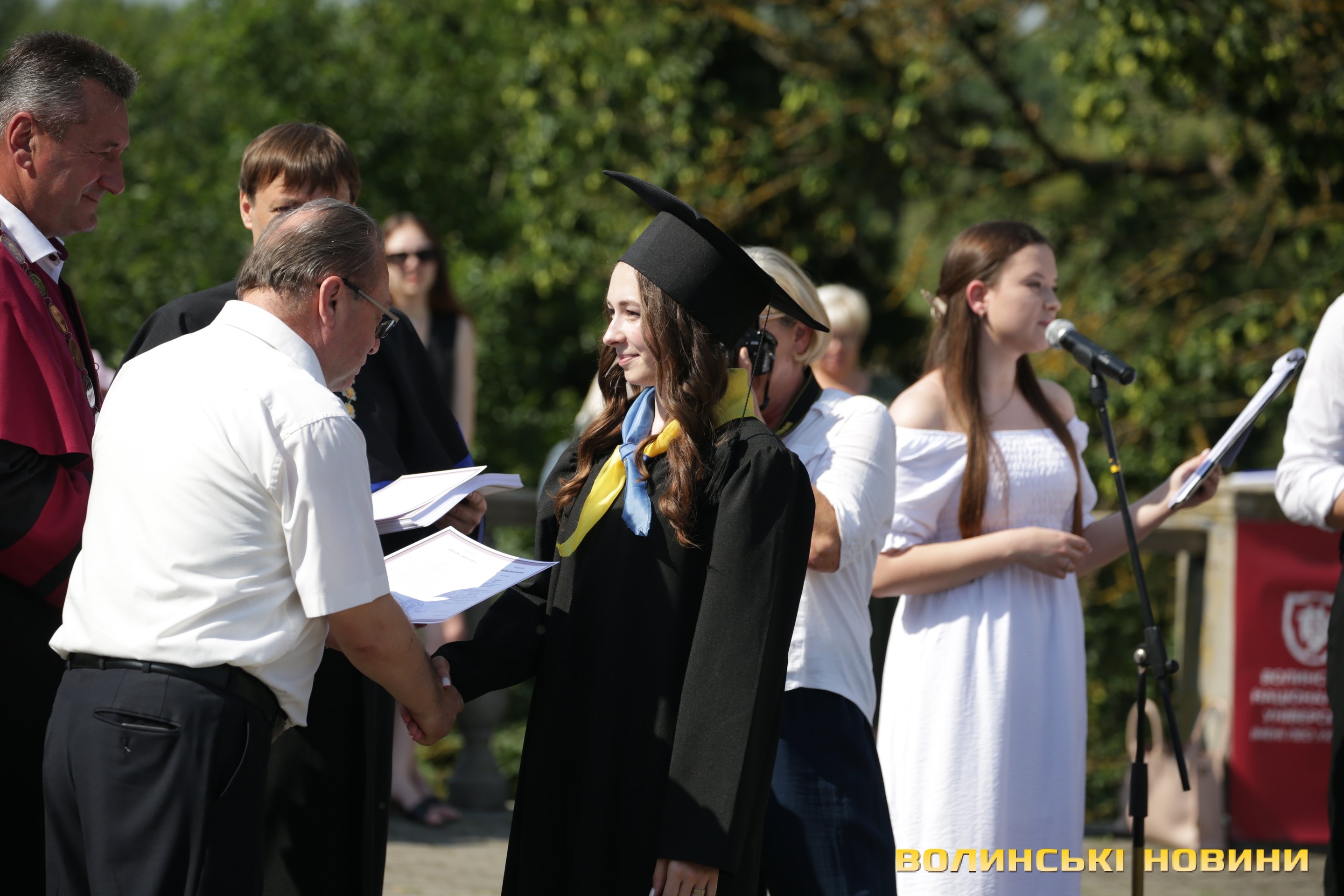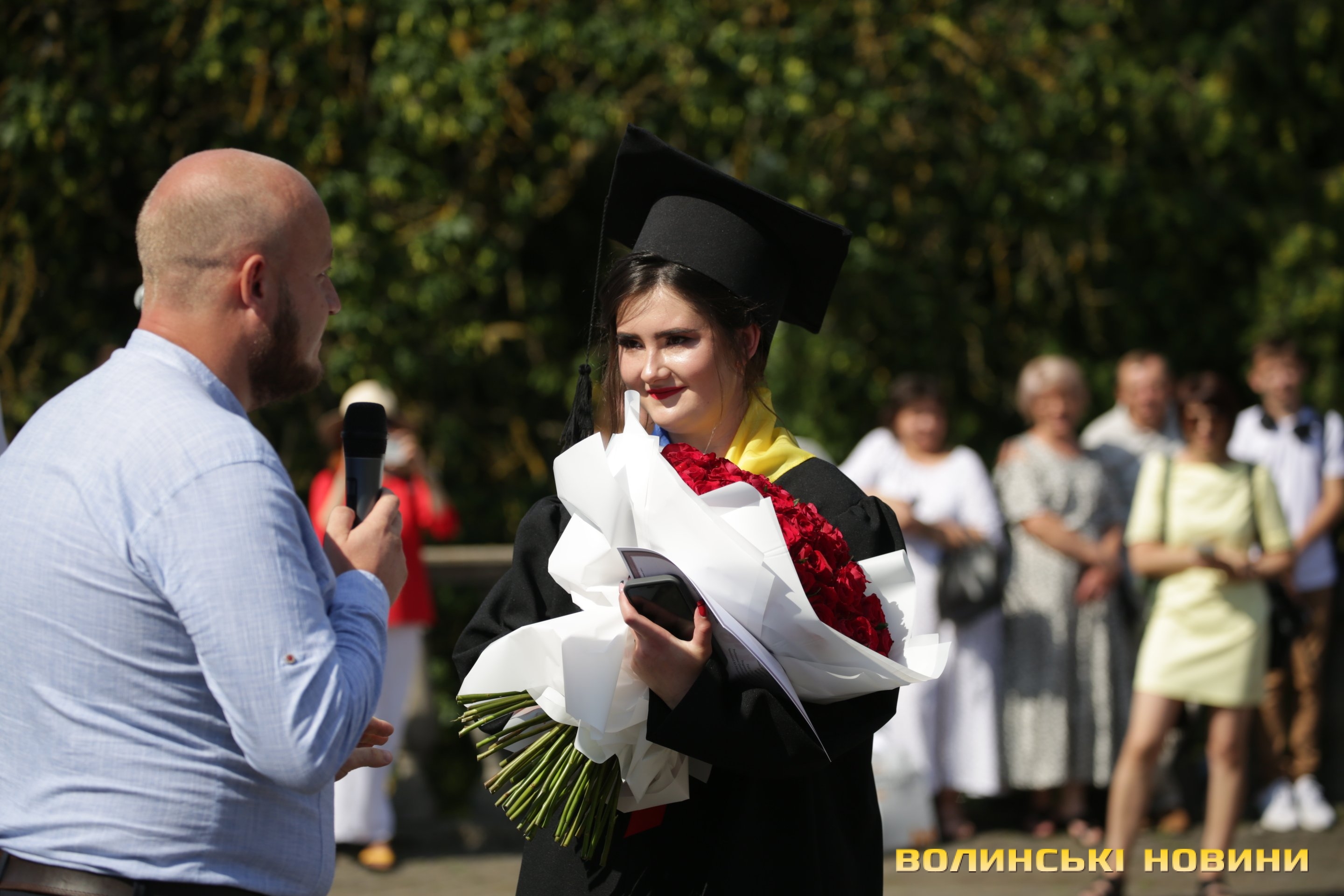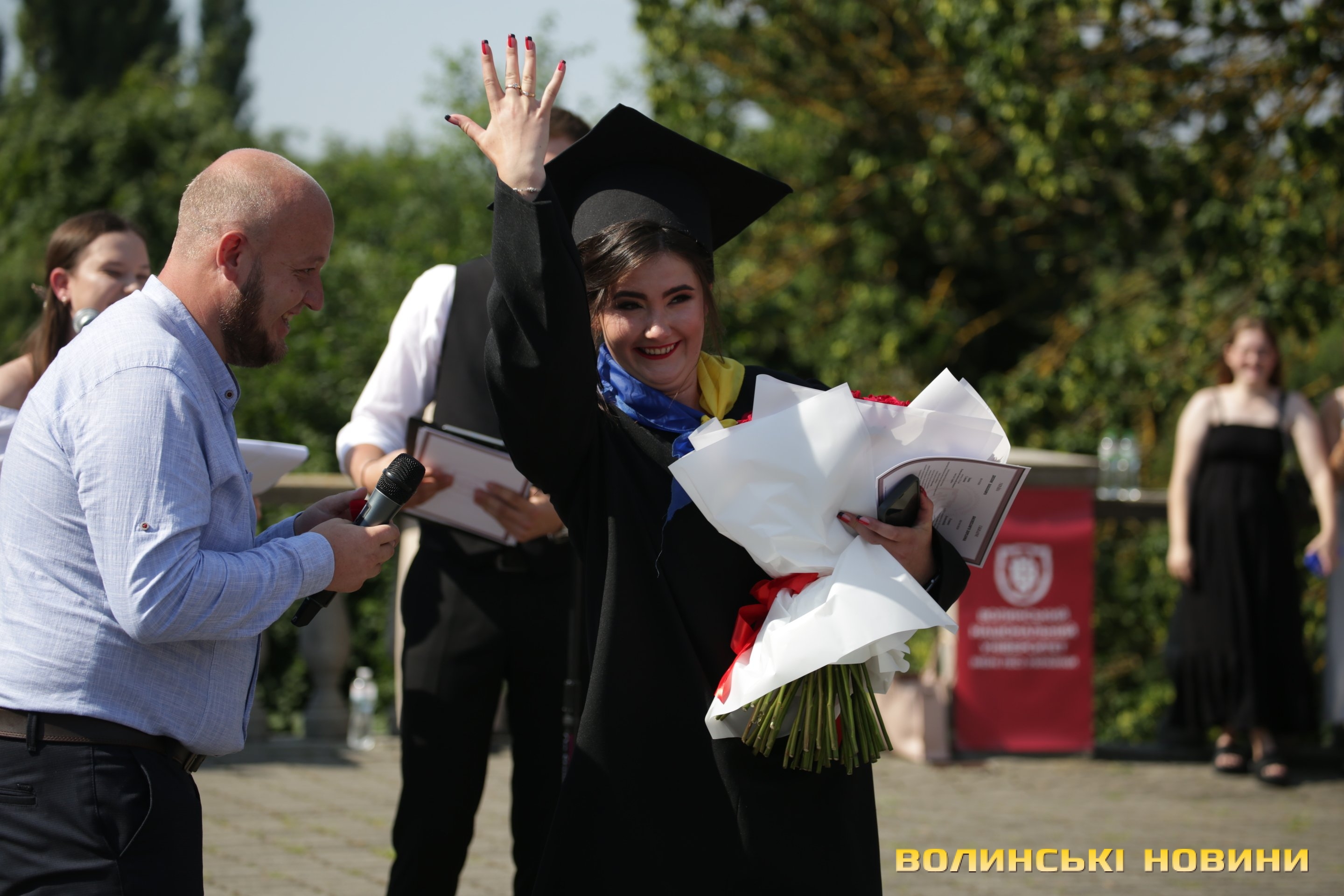 «Вітаю вас, випускники, із початком нового етапу життя. Навчання в Університеті імені Лесі Українки було яскравим періодом вашого життя, періодом підйому, періодом отримання нових знань і навичок. Сьогодні, отримуючи диплом, ви отримуєте ключ від дверей, за якими вас чекають і нові виклики, і нові випробування, але й нові можливості. Рухайтеся впевнено вперед! Змінюйте цей світ! Будьте успішними!» – сказав випускникам заступник голови Волинської обласної ради Григорій Пустовіт.Після вступних слів розпочалося вручення дипломів. Колишні студенти отримували документи про вищу освіту та приймали вітання.