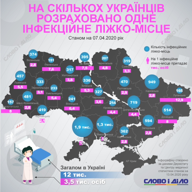 Якщо не будуть створюватись додаткові ліжко-місця у інфекційних відділеннях лікарень, то в цілому в Україні нараховується 12 тис. таких ліжок. На одне інфекційне ліжко-місце припадає 3,5 тис. осіб.