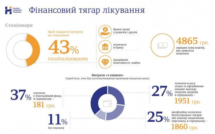 Так, 43% госпіталізованих, щоб покрити вартість лікування, позичали гроші та продавали майно.