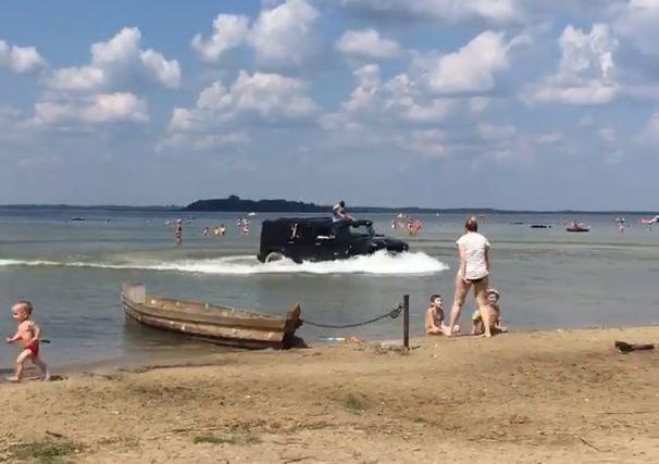 «Олігархи гуляють»: у Світязі Hummer проїхався озером і пляжем. Відео