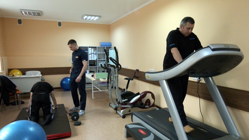 Щодня працює із сімома-вісьмома пацієнтами за індивідуальними курсами реабілітації фізичний терапевт Вадим Прач. Щодня пацієнт виконує вправи по три години з перервою на обід. Вадим Прач каже: запорука успішної реабілітації – мотивація та наполеглива праця самого пацієнта.
