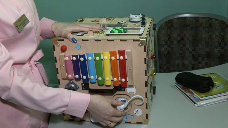 Військовий Олександр Марчук отримав мінно-вибухову травму, також мав травму хребта та параліч лівої верхньої кінцівки, розповідає ерготерапевтка Владислава Глущук, яка працює з пацієнтом у кабінеті ерготерапії. Для відновлення навичок самообслуговування використовують бізікуб.«Після поранення чи хвороби у пацієнта є запит відновити втрачені функції або навчитися щось робити в побуті, бути максимально незалежним. Ерготерапія дає таку можливість», – зазначає Владислава Глущук.