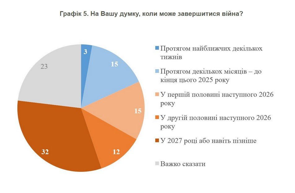 Приблизно 45% громадян України вважають, що повномасштабна війна, яку Росія розв'язала проти нашої країни, завершиться у 2025 або 2026 році.