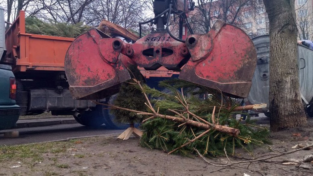 Новорічні ялинки та сосни зі смітників біля будинку збирають працівники підприємства «Луцькспецкомунтранс». Цього року лучани викидають значно менше дерев, ніж у попередні роки.