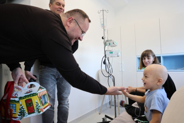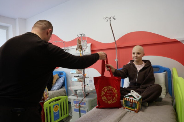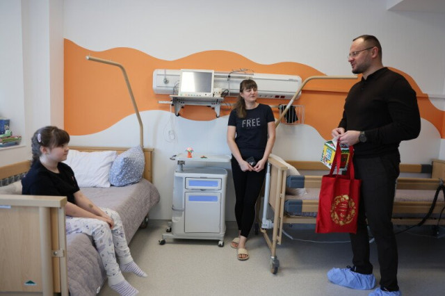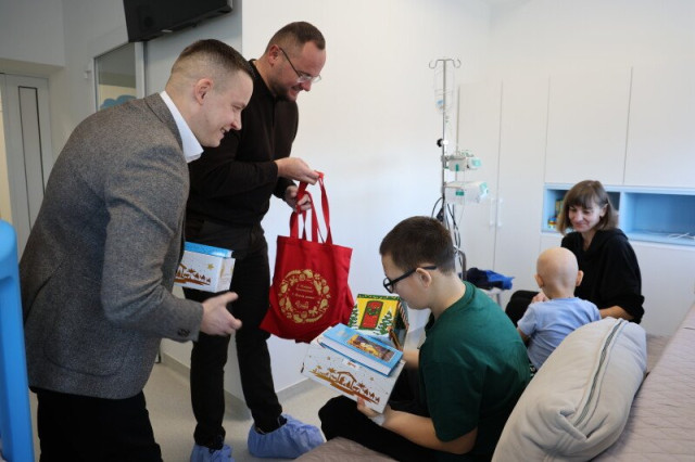 «Сьогодні ми прийшли до важкохворих діток у відділення онкогематології, щоб привітати їх та їхніх батьків з Різдвом, підбадьорити, сказати слова, які трішки піднімуть їм настрій, побажати якнайшвидшого одужання і вручити подарунки: солодощі, сувеніри від міської ради і дитячі Біблії», – зауважив мер.