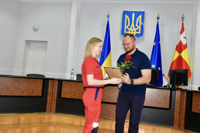 Побажав присутнім якомога менше подібних ситуацій, якнайшвидшого міцного справедливого миру, можливості виконувати звичні обов’язки у штатному режимі», – зазначив мер Луцька.Зокрема, п’ятеро працівників КП «ВОЦЕМДМК» отримали подяки міського голови Луцька за високий професіоналізм, мужність та самовідданість під час проведення заходів щодо ліквідації наслідків руйнувань від ворожих обстрілів, а також вагомий особистий внесок у захист життя та здоров’я мешканців Луцької міської територіальної громади, повідомили на сторінці медустанови.