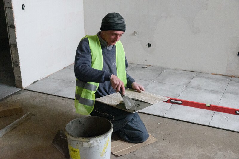 Паралельно із будівельними ведуться роботи із дооснащення гуртожитку меблями (ліжками, стільцями, шафами) та найнеобхіднішою технікою (пральними машинами та кухонним обладнанням). Підрядники сподіваються, що ВПО почуватимуть себе у гуртожитку комфортно, адже одних тільки кухонь тут передбачено 24.