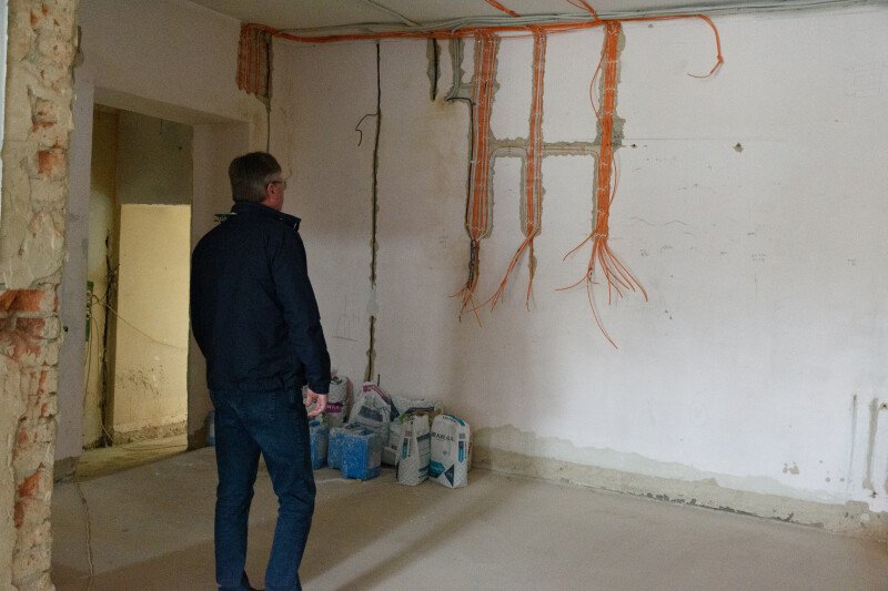 «Вже прокладена інженерія – опалення, водопроводи, електропостачання, – повідомив Ігор Чорнуха. – Тут має бути 54 кімнати звичайних, які розподілені по блоках. Блок – це або три, або чотири кімнати, кухня, санвузли, душові. Є 7 кімнат поліпшеного планування, що передбачають наявність санвузлів у самій кімнаті. Є ще 8 смарт-квартир, кожна площею в межах 24 квадратних метри. І буде дві квартири площею 35 та 38 квадратних метри, де є кухня і санвузли».