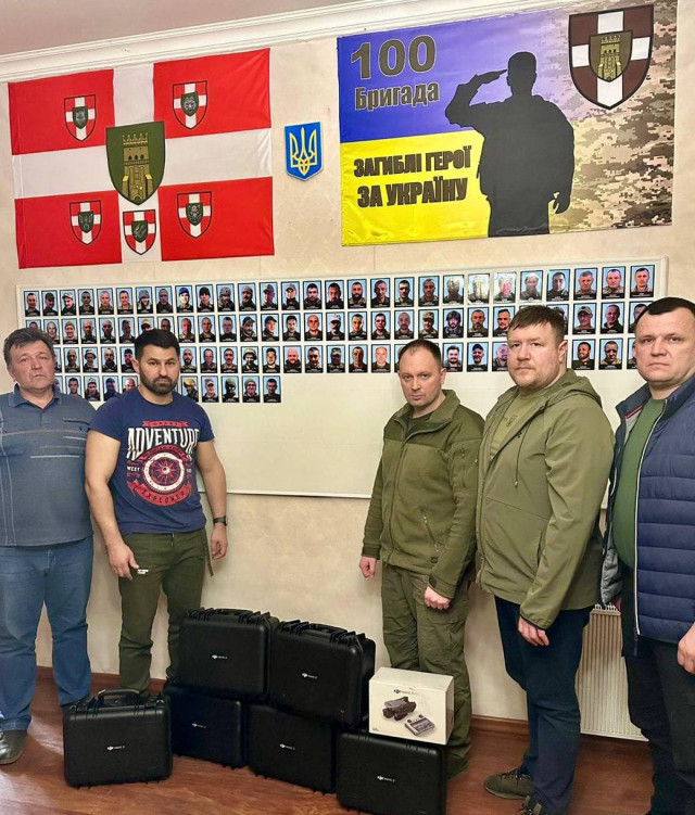 Побували в місці дислокації 100-ї бригади. Поспілкувалися з керівництвом і привітали з отриманням статусу окремої механізованої бригади Сухопутних військ Збройних сил України. Військовим 100-ї бригади передали шість квадрокоптерів DJI Mavic 3T та квадрокоптер DJI Mavic 3 Pro.