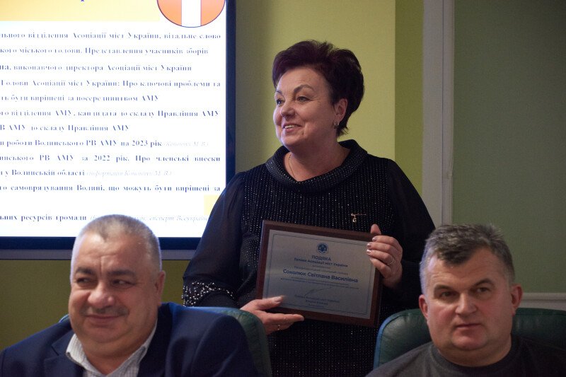 Про проблеми, над якими сьогодні працює АМУ, ключові і найбільш вразливі питання для місцевого самоврядування, розповіла радник голови АМУ Оксана Продан. Серед основних – питання освітньої субвенції, компенсації тарифів, проблематика роботи з НСЗУ, продовження вето на Містобудівний кодекс.Оксана Продан також виконала приємну місію – вручила окремим головам громад Волині подяки голови Асоціації міст України Віталія Кличка. Після цього учасники зборів одноголосно підтримали пропозицію продовжити каденцію Ігоря Поліщука на посаді голови Волинського регіонального відділення голови АМУ. Згідно зі статутом Асоціації, голова відділення обирається строком на два роки.