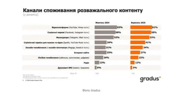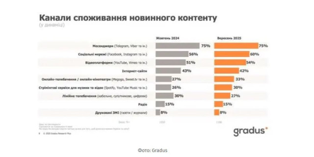 Про це свідчить дослідження Gradus «Медіаспоживання 2025», передають Українські новини.
