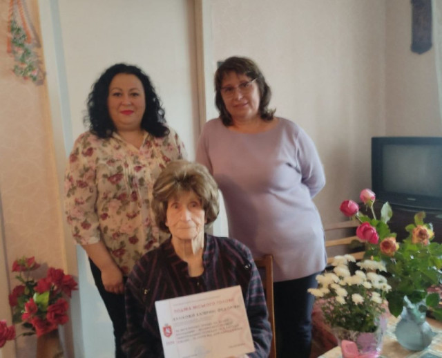 Працівниці терцентру побажали Катерині Федорівні міцного здоров’я, сил, наснаги, дожити до столітнього ювілею та дочекатися якнайшвидшої перемоги. За багаторічну сумлінну працю на благо громади та з нагоди 90-річчя від дня народження ювілярці вручили подяку міського голови та грошову винагороду.