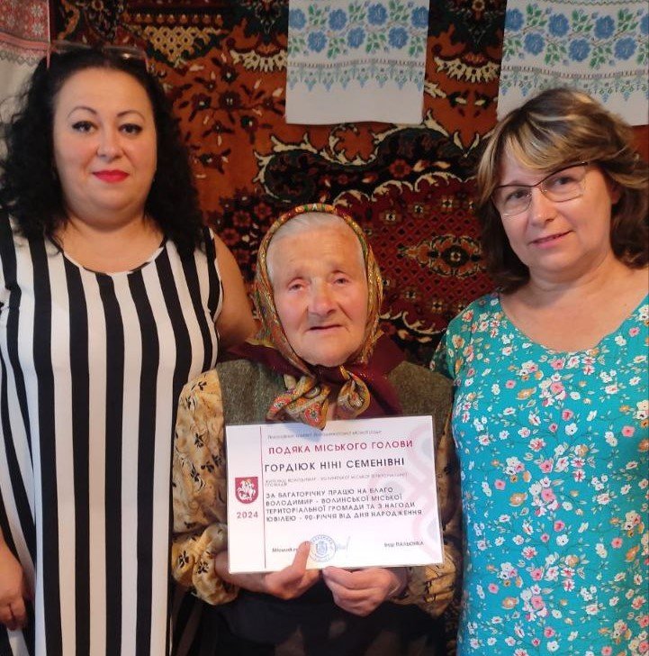 28 серпня відзначала 90-річчя мешканка Володимирської громади Ніна Гордіюк. Привітали іменинницю і побажали їй ще багато років прожити при доброму здоров’ї директорка територіального центру Володимирської міської ради Інна Мацьоха та завідувачка відділу соціальної допомоги вдома центру Галина Локтіонова.