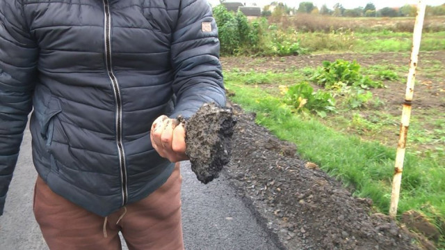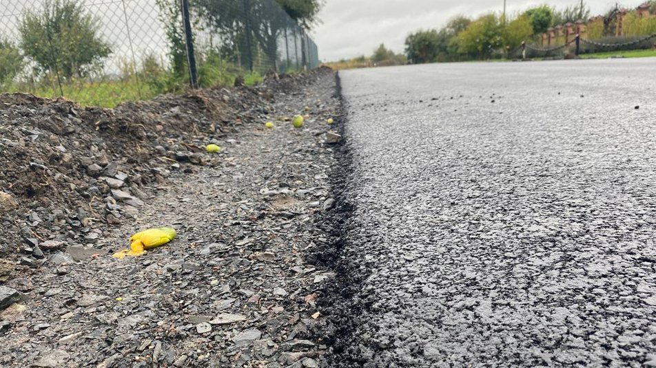 «Цей відрізок, де ми стоїмо, проклали у п’ятницю (30 вересня – ред). Із цього краю положили 1-2-3 см. Можна той асфальт відколупати. Напевно, із низькоякісних матеріалів. Робиться у погану погоду. Наочно видно і люди скаржаться», – каже чоловік.Працівники, які ремонтують дорогу, коментувати виконані роботи відмовилися. Як розповів телефоном керівник підрядної організації Іван Кобак, ремонт, який ще триває, виконують згідно з проєктом.