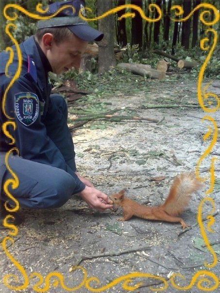о, бідна білочка ше не знає, що за пару сек. дістане дубінкою!