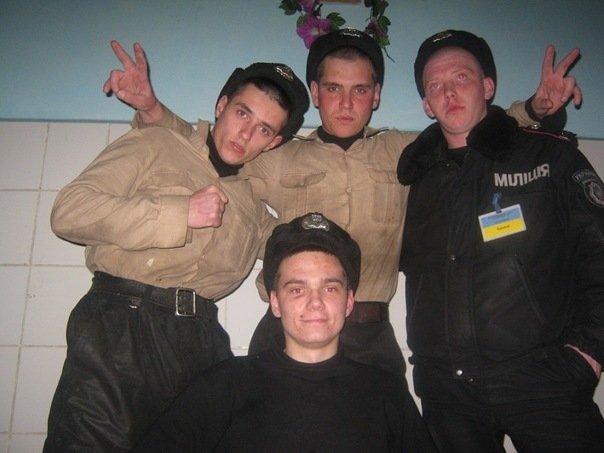 Деякі"поліцаї"на цих фотках схожі на колишніх ГОПСТОПників.Особливо це помітно на фотці де один з них роздітий до пояса у "специфічній"шапочці...