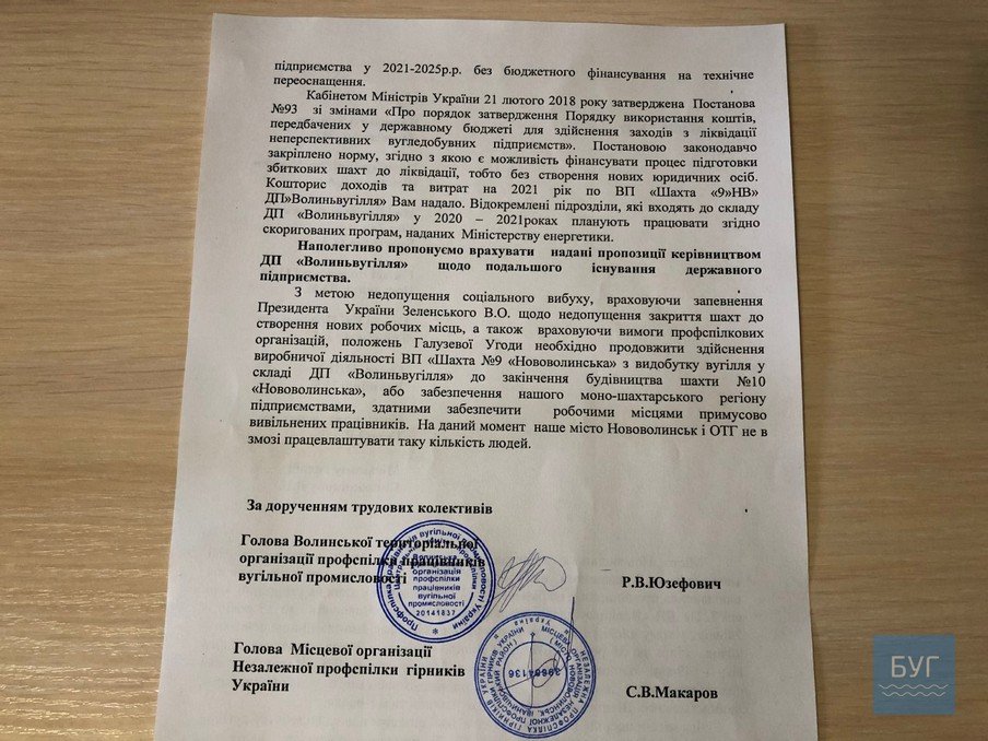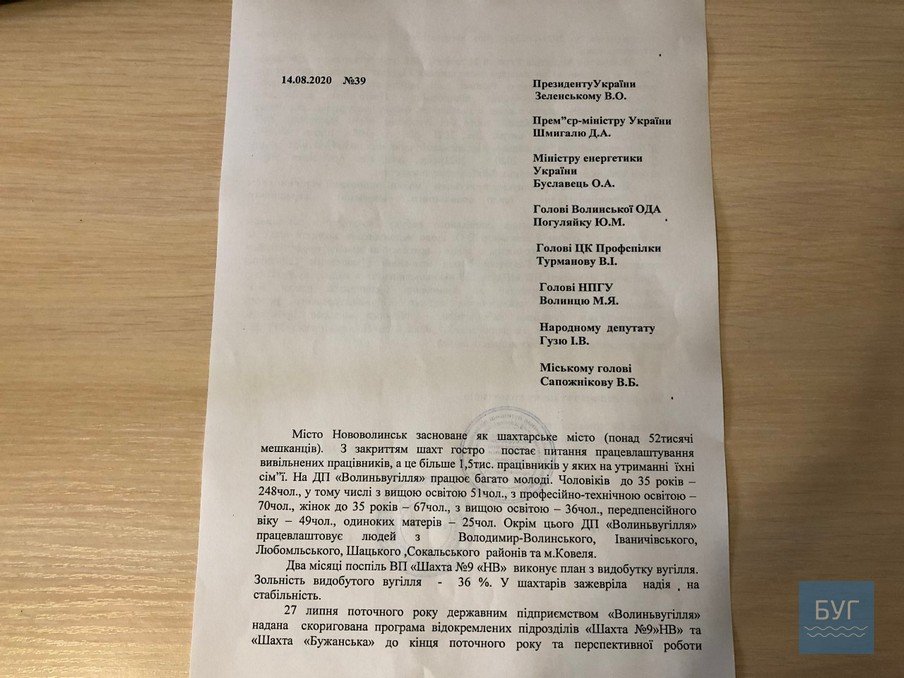 Попри домовленості із Президентом Володимиром Зеленським, питання закриття шахти № 9 «Нововолинська» залишається відкритим. Від Міністерства енергетики України у ДП «Волиньвугілля» надійшов лист, у якому йдеться про розробку документів та план передачі шахти № 9 «Нововолинська» на ліквідацію.
