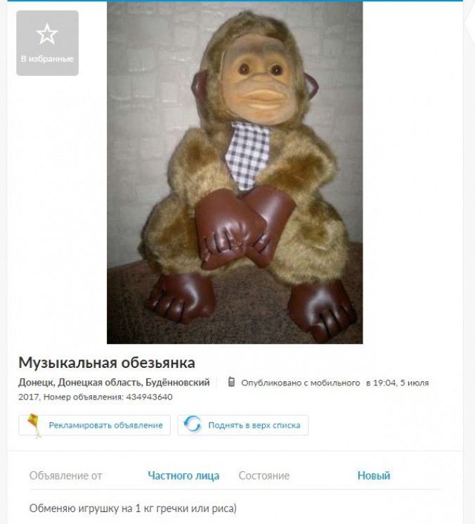 А в жителів Донбасу геть інші справи й забавки. Три роки тому вони обміняли свою Державу на химерні обіцянки російського світу. А тепер обмінюють власний одяг та іграшки своїх дітей, щоб не померти з голоду.