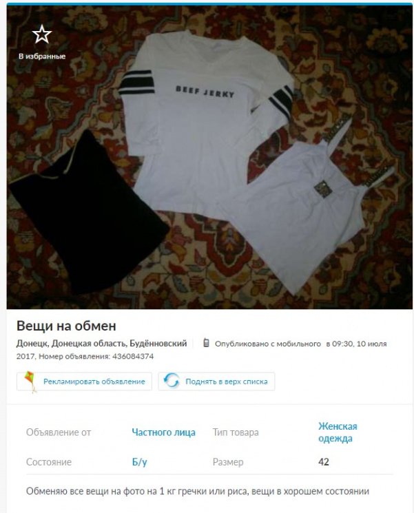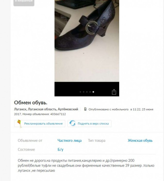 Так само йдуть справи в Луганській області. Ви можете сказати, що в Україні люди також продають на вулиці своє старе майно, і це дійсно так, але більшою частиною це пенсіонери. А на окупованих територіях це люди середьного віку, часто - молоді матері.