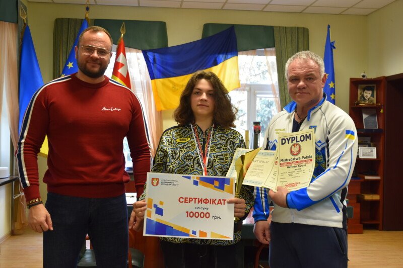 Міський голова Ігор Поліщук зустрівся з 13-річним Кирилом Коцагою, який на Відкритому Чемпіонаті Польщі з пауерліфтингу у містечку Залєсьє встановив одразу три рекорди із жиму штанги лежачи в категорії до 60 кг – рекорд Польщі, рекорд Європи і рекорд світу у федерації GPC (Міжнародна федерація пауерліфтингу).