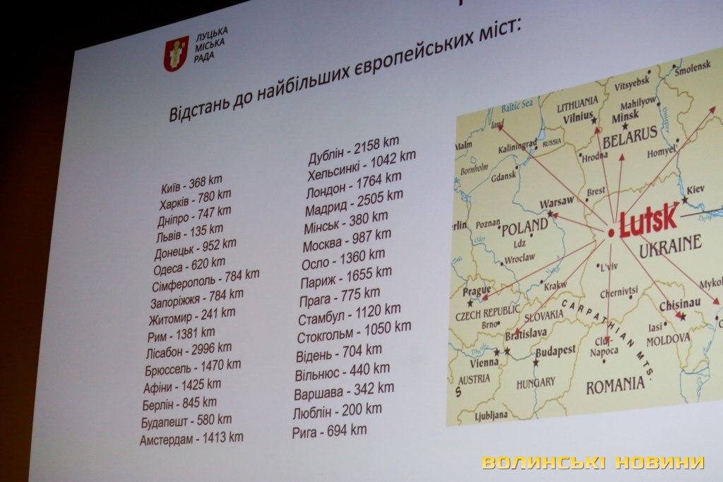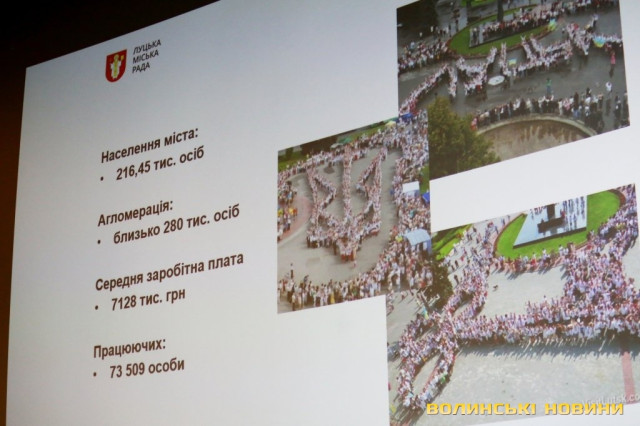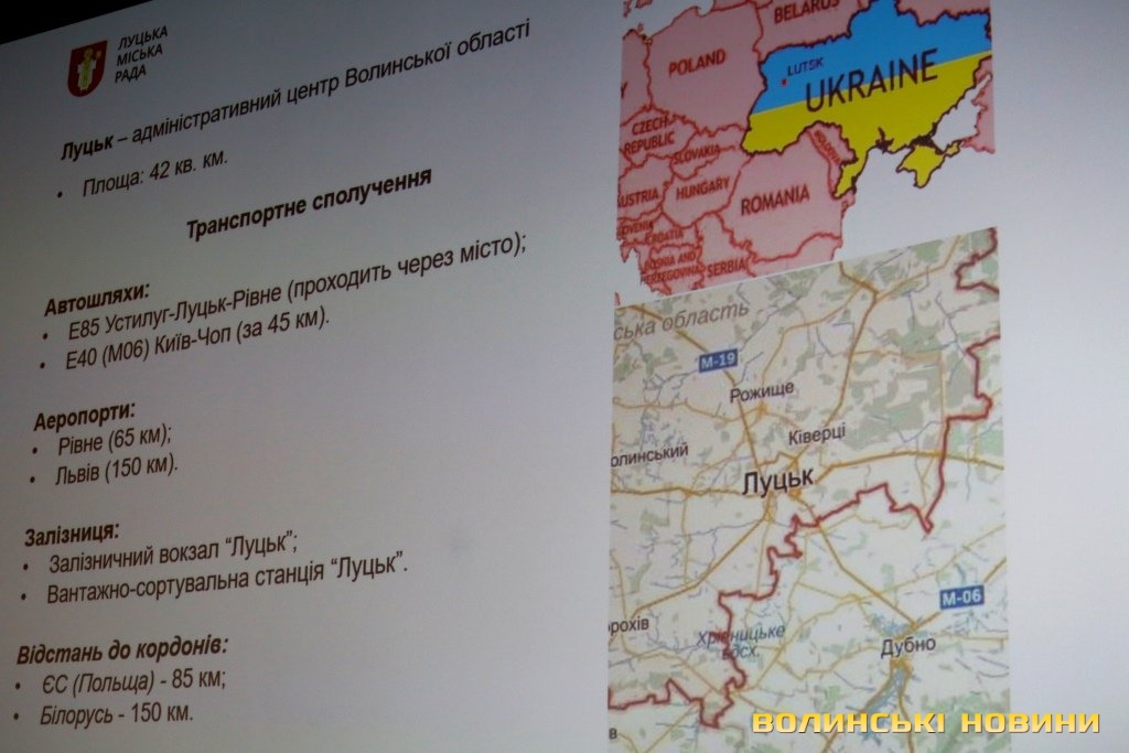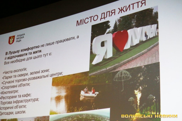 Інвестиційний потенціал Луцька презентував перший заступник Луцького міського голови Григорій Недопад. Він розповів, що місто розташоване за 85 кілометрів від Польщі та за 150 кілометрів від Білорусі, має населення 216 тисяч (агломерація – понад 280 тисяч), середній рівень заробітної плати становить 7128 гривень, у місті налічується 73,509 тисячі працюючих, 25,6 тисячі учнів у 29 школах, два національні університети.