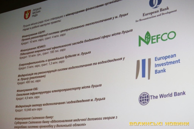 Говорячи про співпрацю з міжнародними фінансовими організаціями, Григорій Недопад зауважив, що Луцьк реалізовує проект з ЄБРР, у рамках якого замінюють тепломережі, закривають підвальні котельні з метою економії газу та електроенергії. Співпраця з Європейським інвестиційним банком спрямований на водоочистку та водовідведення. Також місто реалізовує спільні проекти з НЕФКО: багато комунальних підприємств пройшли термомодернізацію. Найбільшими донорами, кошти яких спрямовують на розвиток міста, лишаються ЄБРР та ЄІБ.