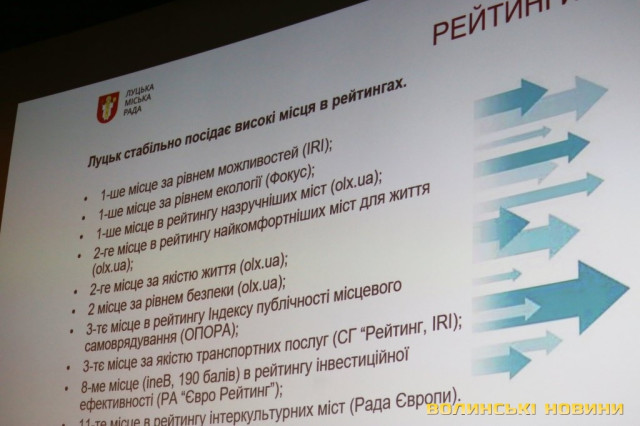 Також перший заступник міського голови повідомив, що місто співпрацює як партнер з 18 містами та районами у 12 країнах світу, а нещодавно перемогло у спільному проекті відновлення історичних пам’яток. Місто отримало три відзнаки ПАРЄ, зокрема, Щит честі у 2017 році. Григорій Недопад наголосив, що Луцьк – це місто для життя, де приємно проводити час можна не лише на роботі, а й у вихідні: активно відновлюють центральний парк, де з’являються оновлені алеї та ліхтарі, вдалося відновити судноплавство на Стиру. Насамкінець, він навів низку позицій міста у всеукраїнських рейтингах: місто стало першим за рівнем можливостей, рівнем екології та лідером рейтингу найзручніших міст.