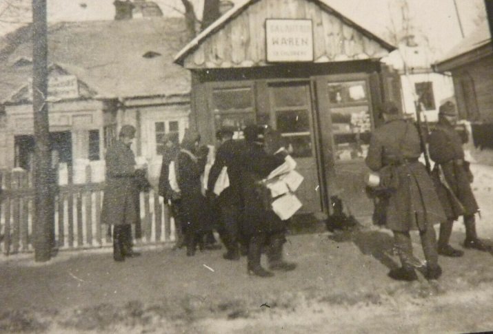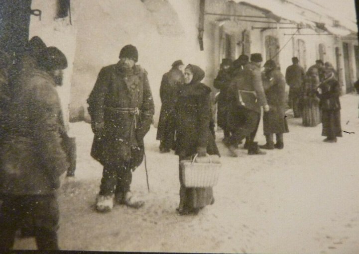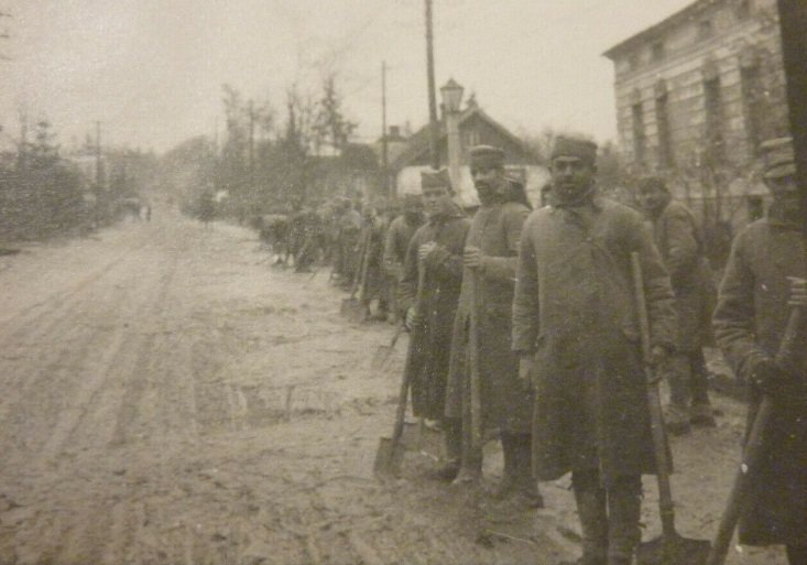 Фото датуються 1915-1916 роками, тобто періодом Першої світової війни (1914-1918 рр.). На них можна побачити як військових німецької армії, так і місцеве населення й біженців.