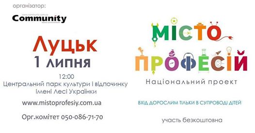 Національний проект «Місто професій» відбудеться у Центральному парку імені Лесі Українки у Луцьку.