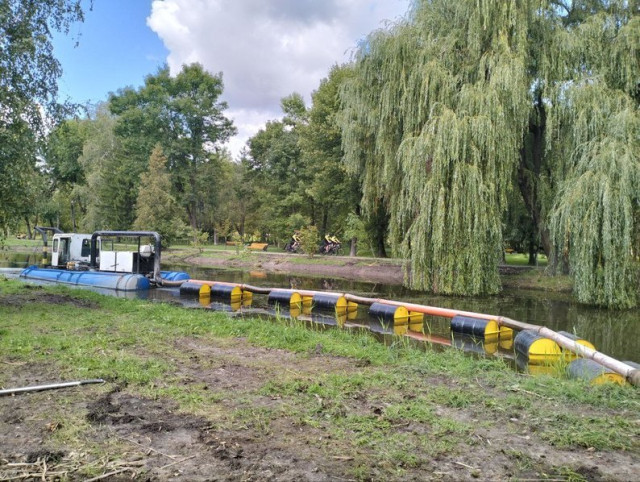 «Равлик, що всмоктує мул, водорості. І по пультопроводу викидає все на берег. Займаємося очисткою, знаходимо багато речей. Це парк. Люди викидали все сюди із смітників – пляшки, іграшки, тапочки. Найбільше ми викидаємо мул із зіллям, щоб не було цвітіння води», – зазначив працівник.Землесосним снарядом Юрій Коробко керує 7 років. Вага плавзасобу становить 5 тонн. Зі слів чоловіка, востаннє меліоративний канал у міському парку розчищали п’ять років тому. За цей час, додав він, наросло мулу й рослинності майже 40 сантиметрів.