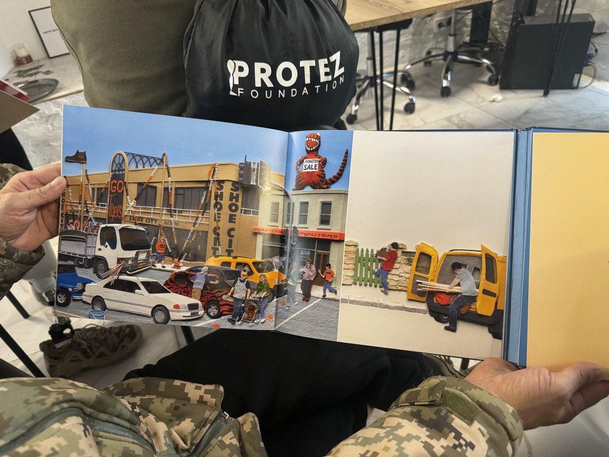 У монастирі воїни також переглядали «тихі» книжки – книги з ілюстраціями без слів, як своєрідний спосіб висловити думки та емоції, які кожен проживає індивідуально. Один із військових, колумбієць з іноземного батальйону, якого вразила ця ідея, попросив таку книгу для своєї доньки. Відзначимо, що цього разу серед українських військових було два чоловіки родом з Колумбії, які також стали воїнами України.Наприкінці захисників чекали символічні подарунки – проскурки, спечені монахинями спеціально для кожного з них. А дітки Підгайцівського ліцею традиційно передали свої малюнки, безпосередні і щирі.