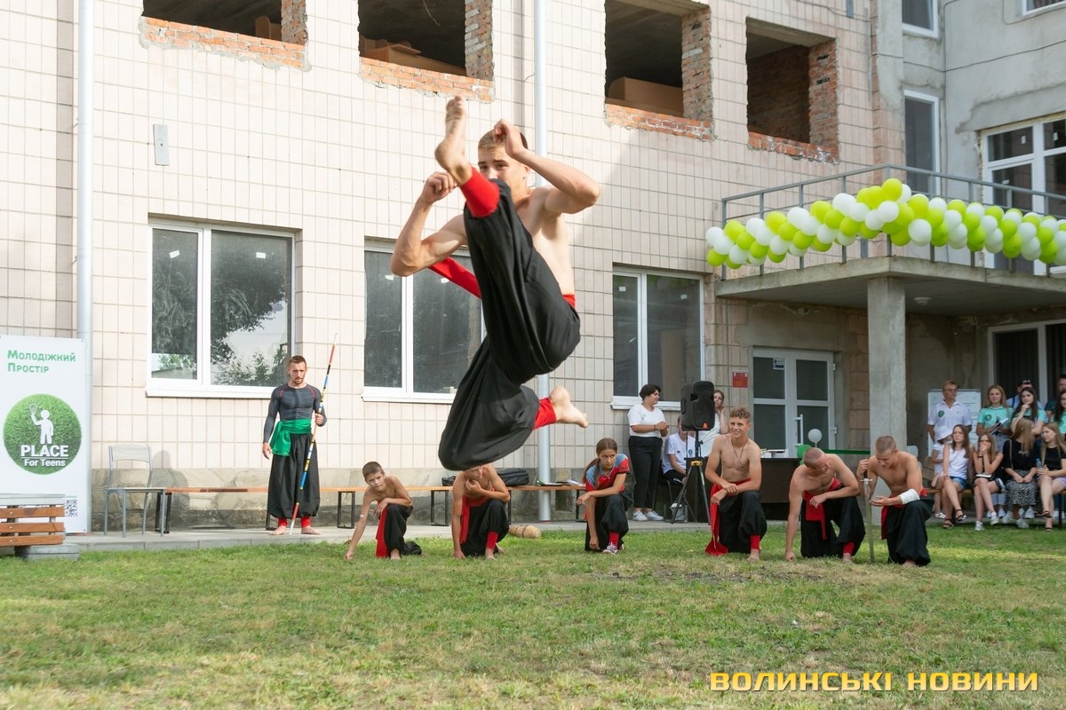 Дівчата дякували усім, хто повірив у гарну справу, підтримував їх – морально, матеріально, досвідом і знаннями. Одним з таких людей є і депутат Луцької міської ради від партії «ЗА Майбутнє» Роман Кравчук.«Сьогодні ми маємо справді історичну подію для мікрорайону. Ціль простору – інтегрувати у міське життя нашу молодь, де вона зможе спілкуватися, розвиватися, будувати плани на майбутнє. Такі осередки є гарною показовою моделлю для всієї луцької громади. Думаю, що з цього центру розпочнеться рух таких молодіжних центрів і осередків у місті. Це гарна перспектива, гарний приклад. І ми як депутати, як міська влада, зробимо усе для того щоб, поширити таку ініціативу по усій луцькій громаді», – наголосив Роман Кравчук. А ще пообіцяв передати подарунок – фірмову футболку від «Place for Teens» міському голові Ігорю Поліщуку.Своїми враженнями від події поділилася і голова правління ГО «Розвиток Мікрорайонів Міста» Наталія Грушка. «Дівчата говорили, що 9 місяців вони виношували цей проєкт – як маленьку дитину. Дивлячись у їхні очі, я згадала себе у тому віці. Своє бажання змінити школу, молодь, село. Ми дуже раді, що спільно з міською радою змогли реалізувати цю ідею. Рада, що у нас є команда однодумців».На глядачів чекала насичена програма, приурочена відкриттю молодіжного простору. Розпочали її вокальні виступи та запальний танець дівчат зі школи танцю «Баланс». За тим усі мали змогу побачити, що таке справжня українська відвага та майстерність. А також переконатися – постійні тренування дають надзвичайні результати. Це довели виступи учасників СК козацького бойового мистецтва «Герць». Глядачі захоплено аплодували акробатичним трюкам та елементам володіння традиційною національною зброєю – серпами, булавою, списами, шаблею.Паралельно з цим наймолодші гості тішилися бульбашковим шоу, майстер-класами, розмальовками, солодощами. Вечірня пора не стала на заваді святу – на цей час організатори запланували гутірку, естафети, а на ще пізнішу пору – перегляд української пригодницької стрічки «Сторожова застава».Олександр ДУРМАНЕНКО