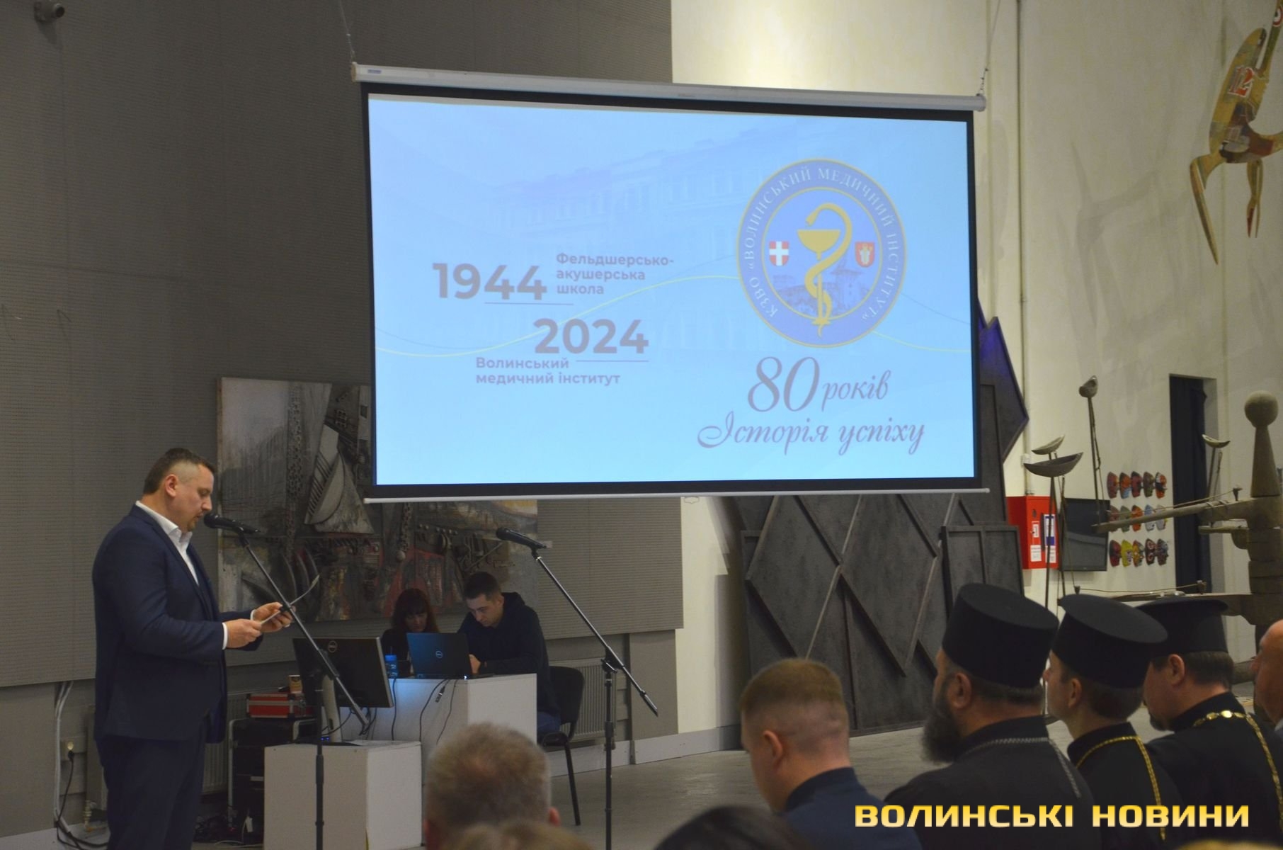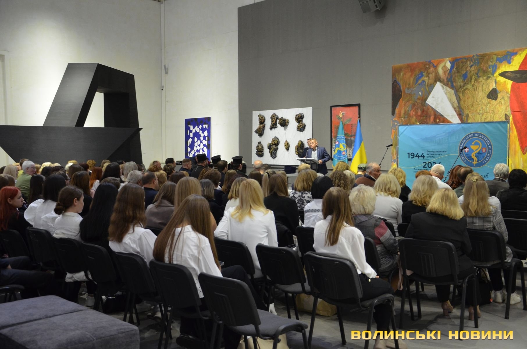 Історія закладу бере початок від 1944 року, коли в Луцьку заснували фельдшерсько-акушерську школу. Там навчалися 60 учнів під керівництвом 13-ти викладачів. Відтоді заклад розвивався, розширювався, змінював назви, але при тому щороку випускав якісних працівників медичної галузі.У нинішній час професія медика має особливо вагоме значення, бо саме вони рятують військових та цивільних громадян, які потерпають від російської агресії. Тому на початку присутні вшанували хвилиною мовчання загиблих під час війни українців та виконали Державний Гімн. По тому поіменно згадали працівників та випускників медінституту, які полягли за незалежність держави, а також тих, хто нині захищає Україну.