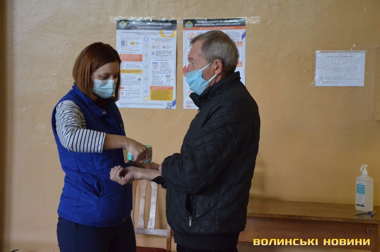 Також наголосила, що всім виборцям при вході до приміщення вимірюють температуру, пропонують і маску, і ручку.