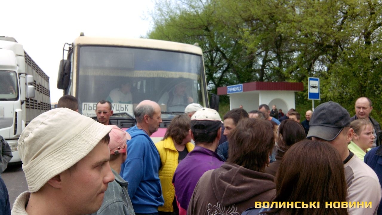 Мітингувальники під Луцьком не пропустили автобус з пасажирами. Виник конфлікт