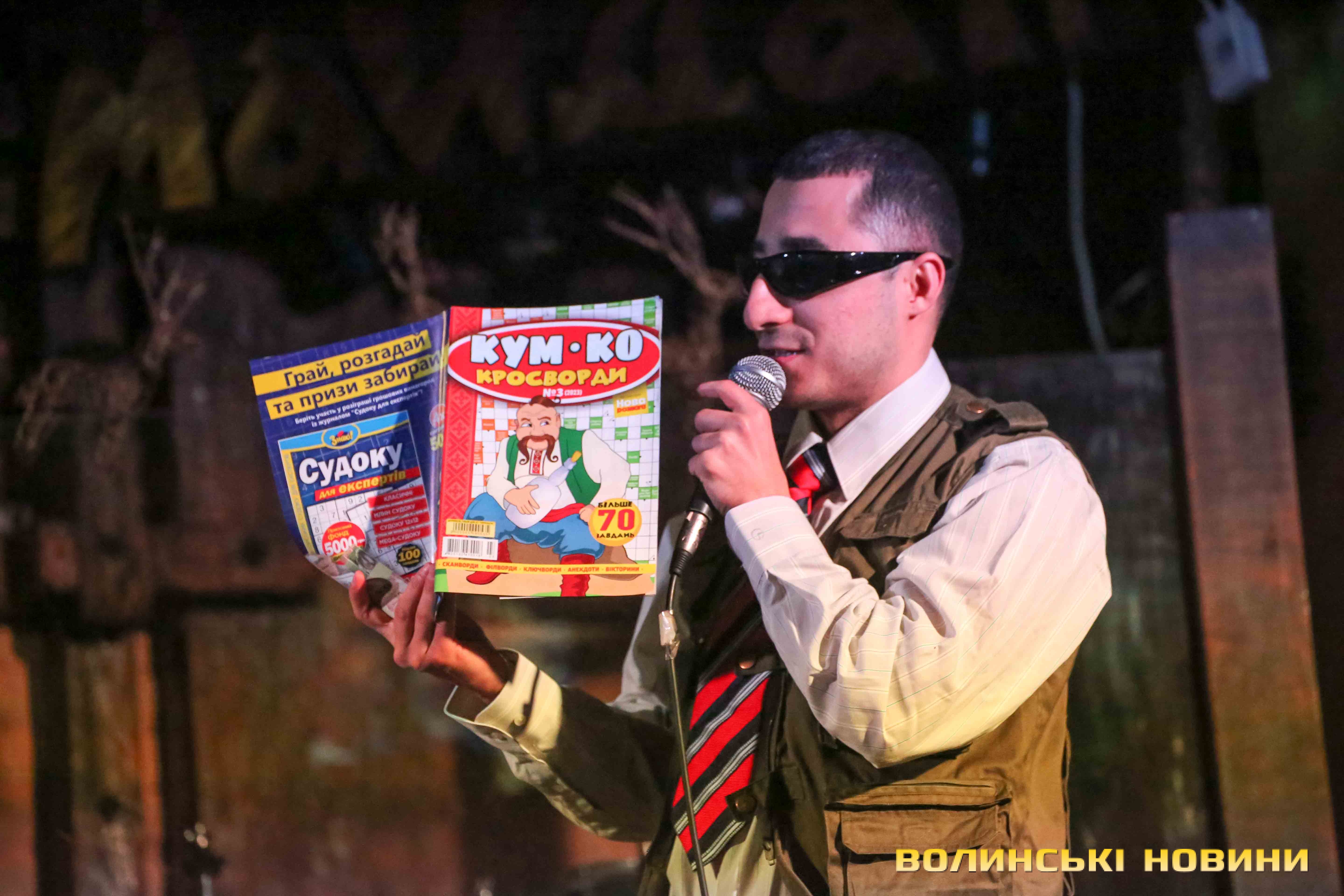 В обласному центрі Волині учасник гурту сільських реперів Курган і Agregat Аміль Насіров намагався розсмішити лучан, а коли це в нього не виходило, то просто читав анекдоти з газети, яка згодом пішла як один із лотів на благодійному аукціоні на підтримку Збройних сил України.