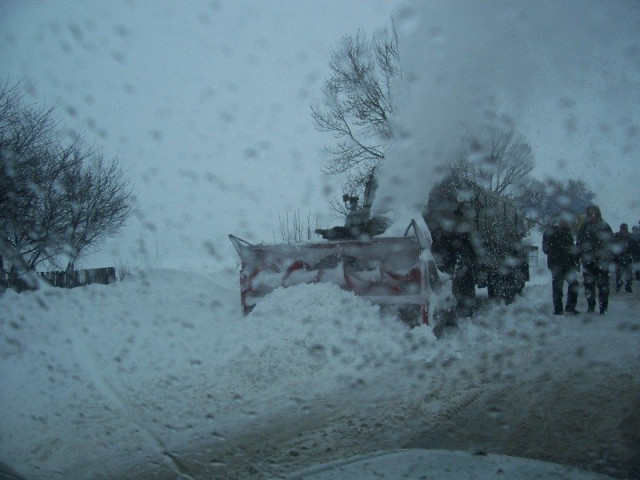 Із сусідніх сіл на трасу виходять хлопці з лопатами. Вони за винагороду погоджуються розчистити снігові замети під колесами фур.