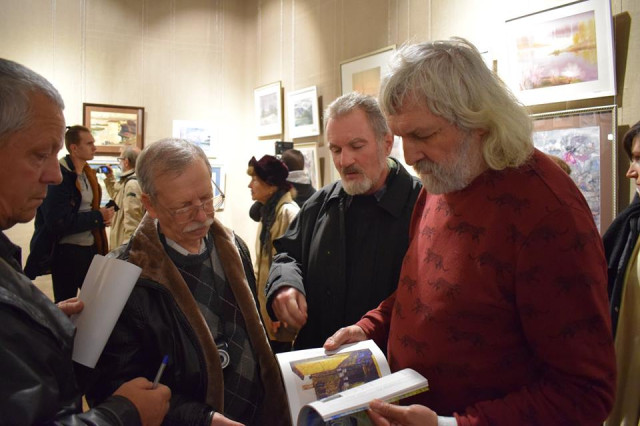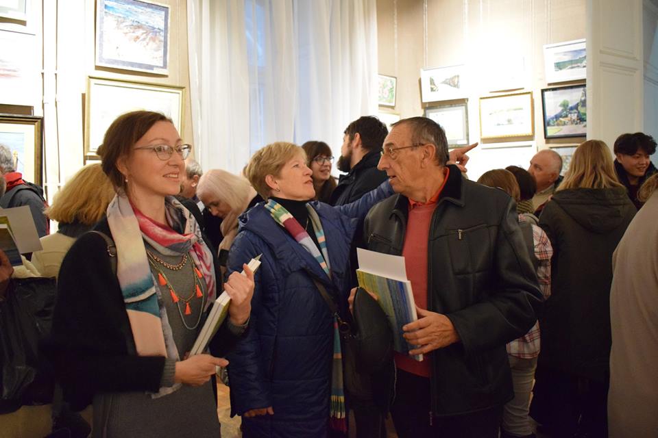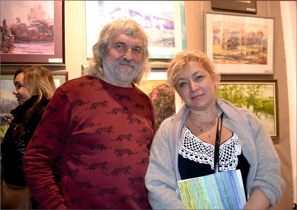Кожен учасник одержав сертифікат і каталог «Море акварелі-2018» – солідне видання із зазначенням всіх дотичних до проведення бієнале організаторів, фахівців, акварелістів. Я дуже задоволена участю в цій масштабній мистецькій події!Під час відкриття виставкиЗ Анатолієм Кравченком
